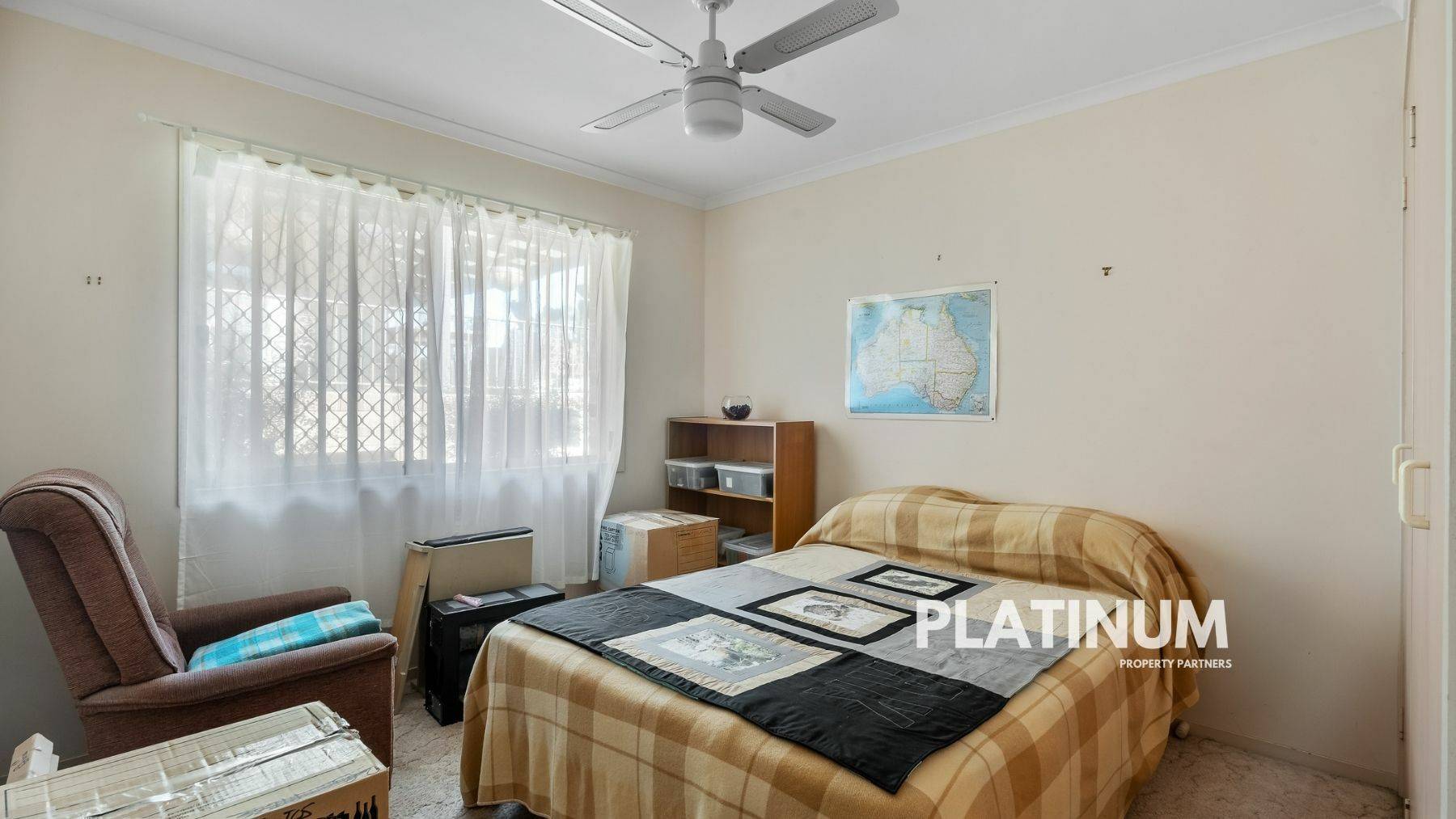 We then move on to the three bedrooms that all come with built-in robes and ceiling fans. Not to mention the master comes with a walk in as well as a built in. They are all spacious enough for king beds and can all easily be used as office spaces. These are all serviced by your centrally located huge bathroom. With a very practical layout. Keeping the bath and shower, full length vanity, and toilet all completely separate. The design has certainly been well thought out.