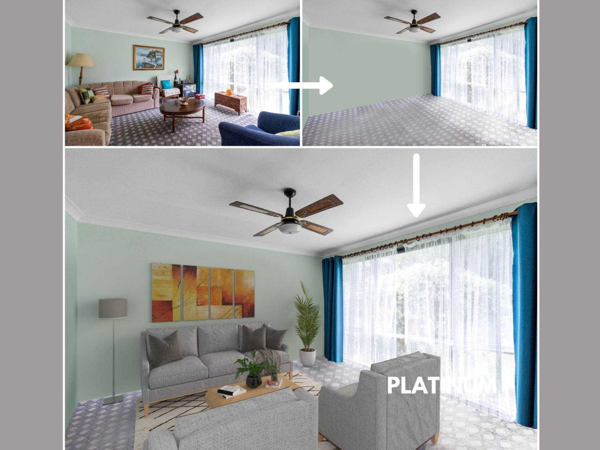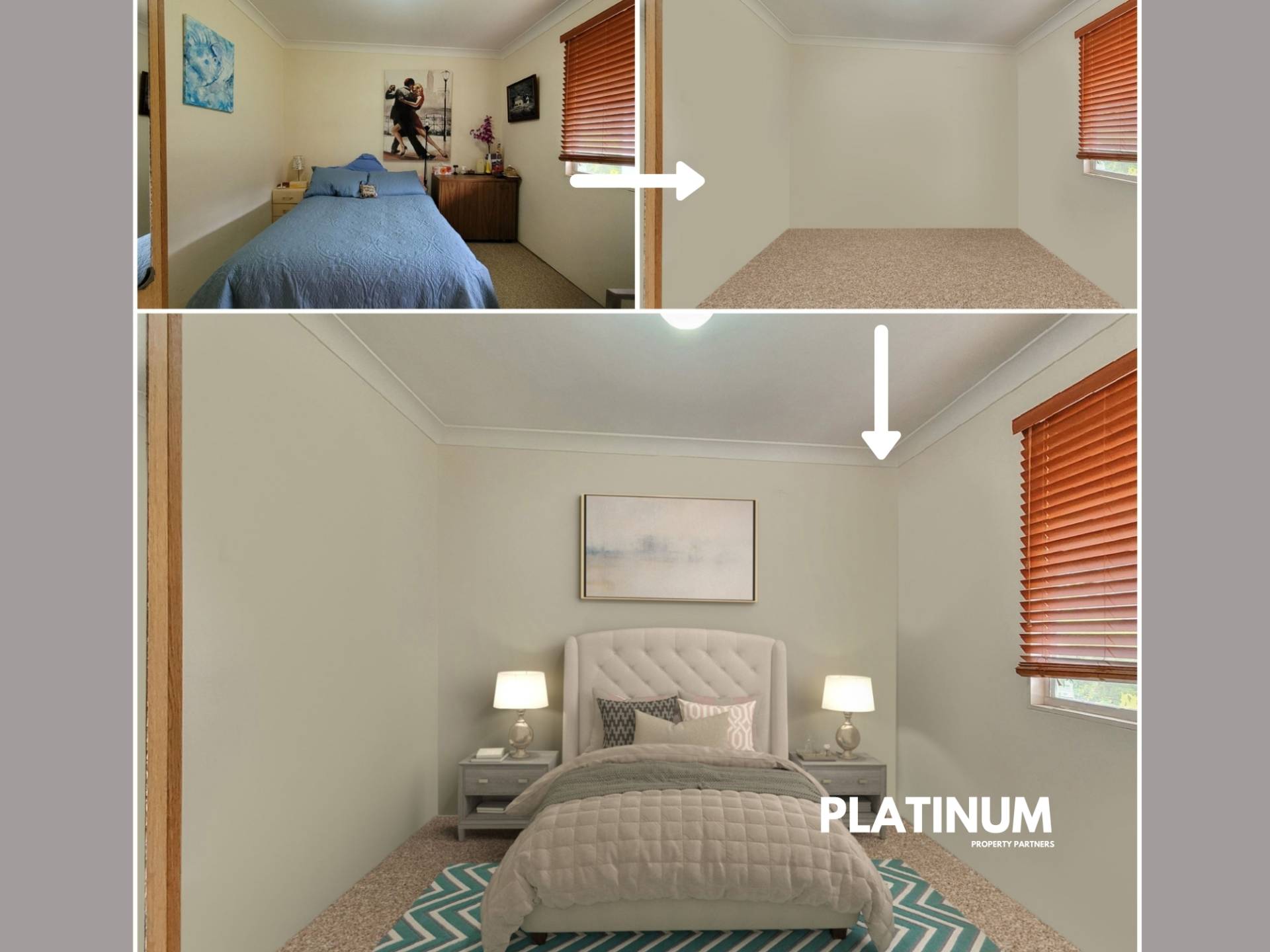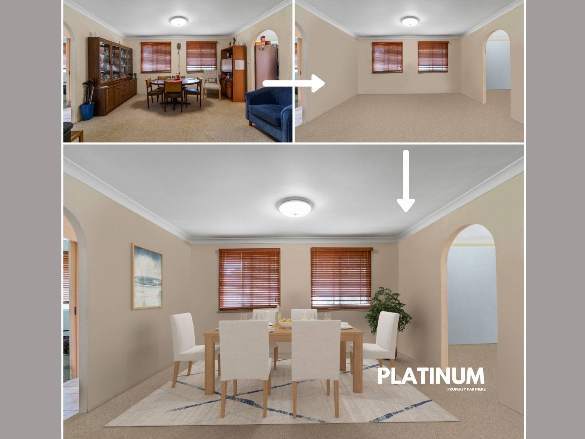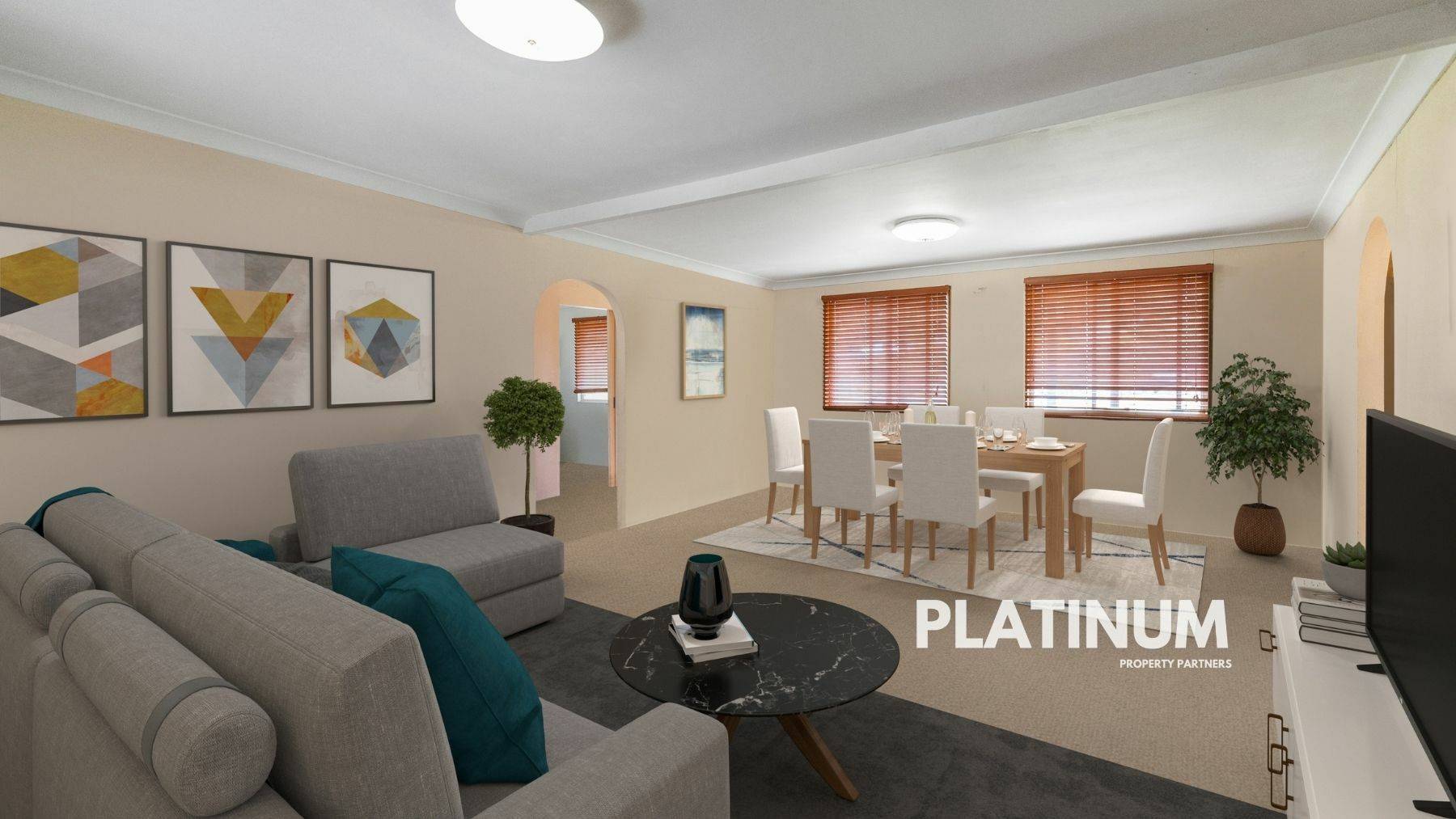 Currently, the home offers a spacious and flexible layout. There are three bedrooms and one bathroom, plus two living areas with the potential for one to be converted into a fourth bedroom if you need more space. Elegant archways connect the living space and there is a large and light-filled kitchen with electric appliances.