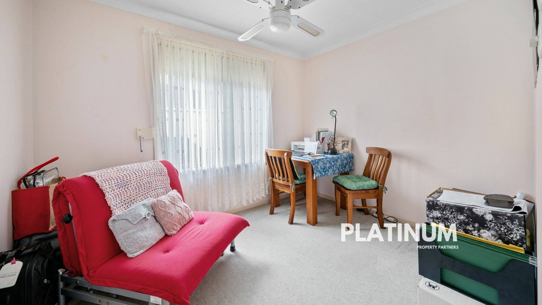 The family room will delight you as you step inside from the main entry. It features carpet flooring that will make you feel all warm and cosy as you settle down and watch TV. Moreover, it is fitted with a ceiling fan light that adds brightness and functionality to the room, and an air-conditioning unit to keep you cool in the summer.