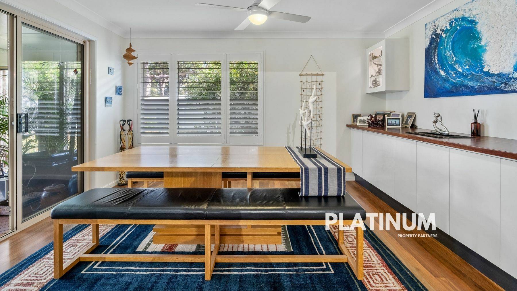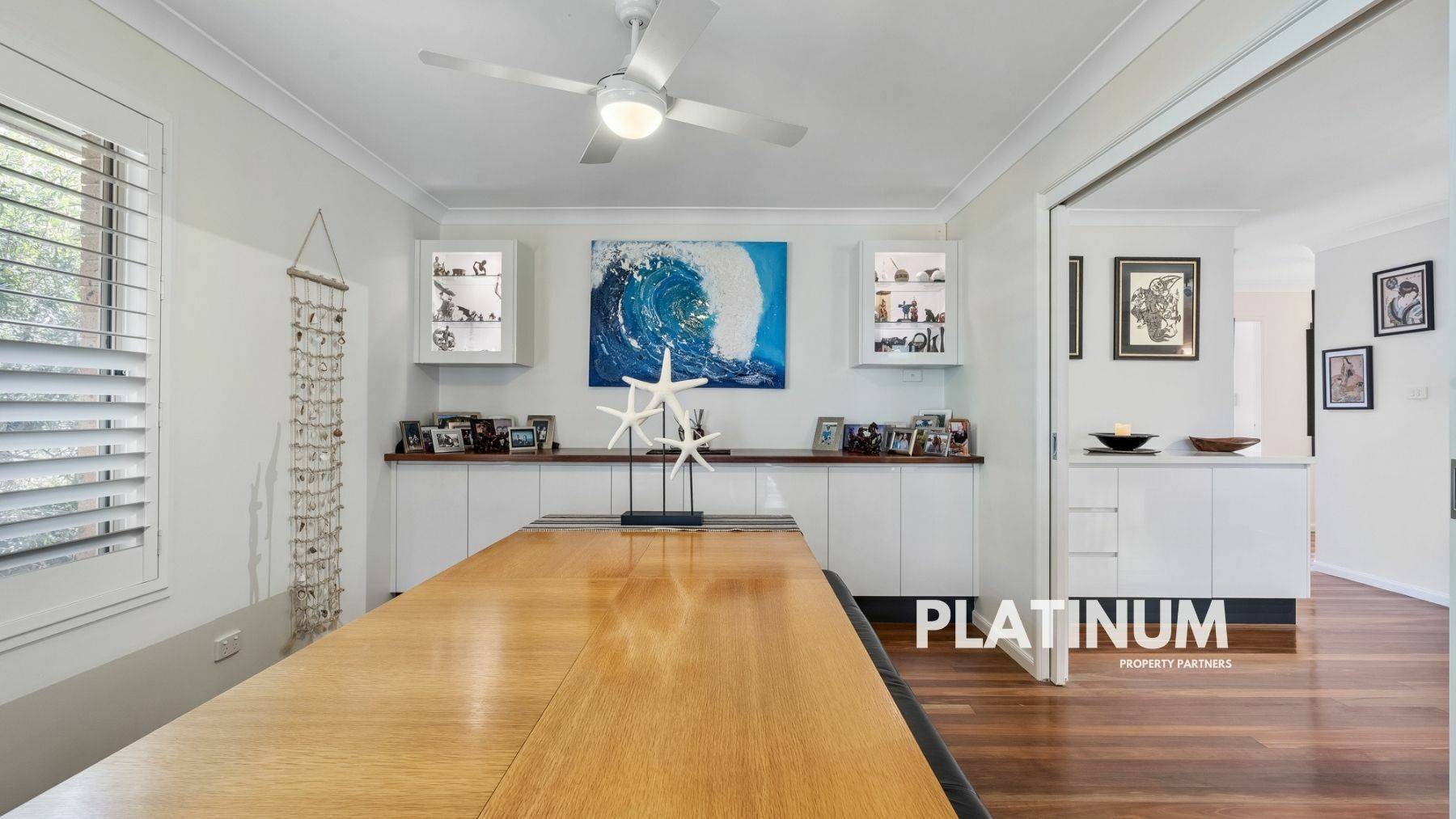 A formal dining room is ready for your next dinner party with loved ones or you can move into the large living room with split system air-conditioning, ceiling fans and sensational views of the water.