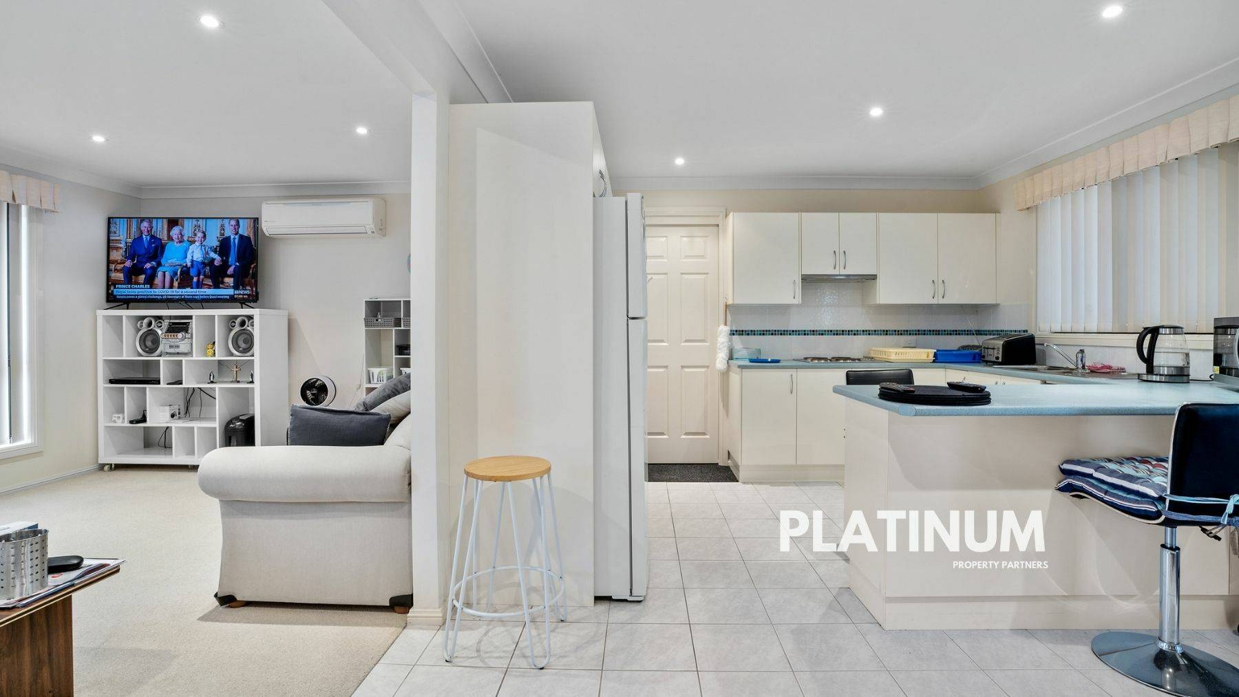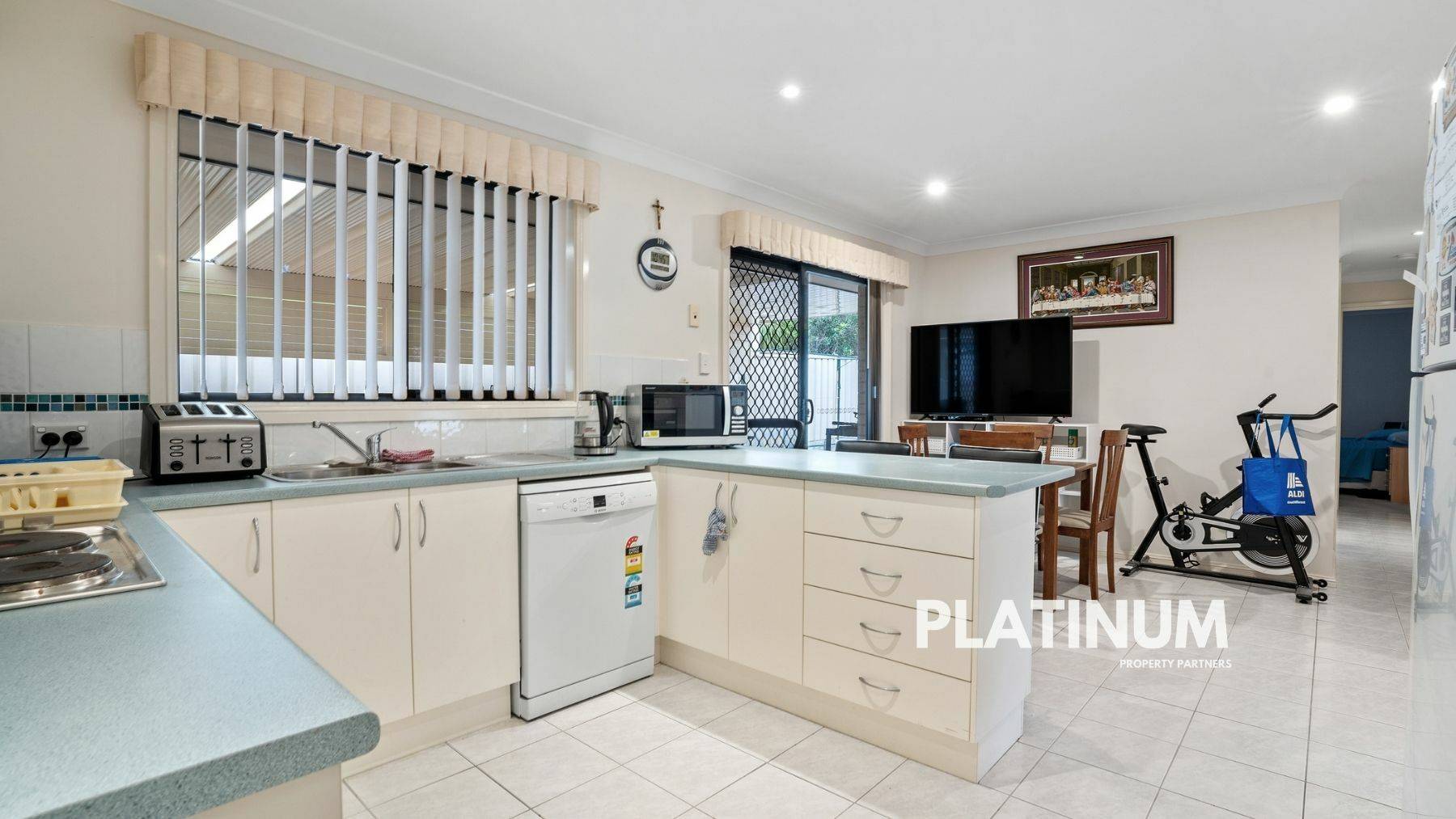 It also boasts a large living room with split system A/C that flows onto the open plan kitchen and dining area. Making entertaining or family time easier than ever! The kitchen is nothing short of surprising with double sinks, electric cooking, dishwasher, huge amount of bench space, and enough storage to run an industrial kitchen!