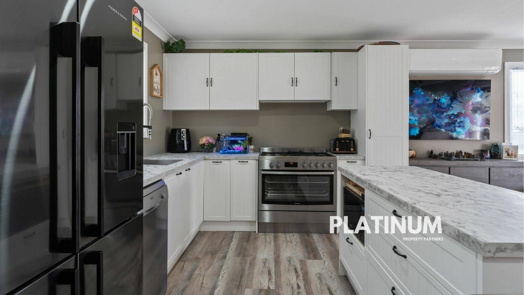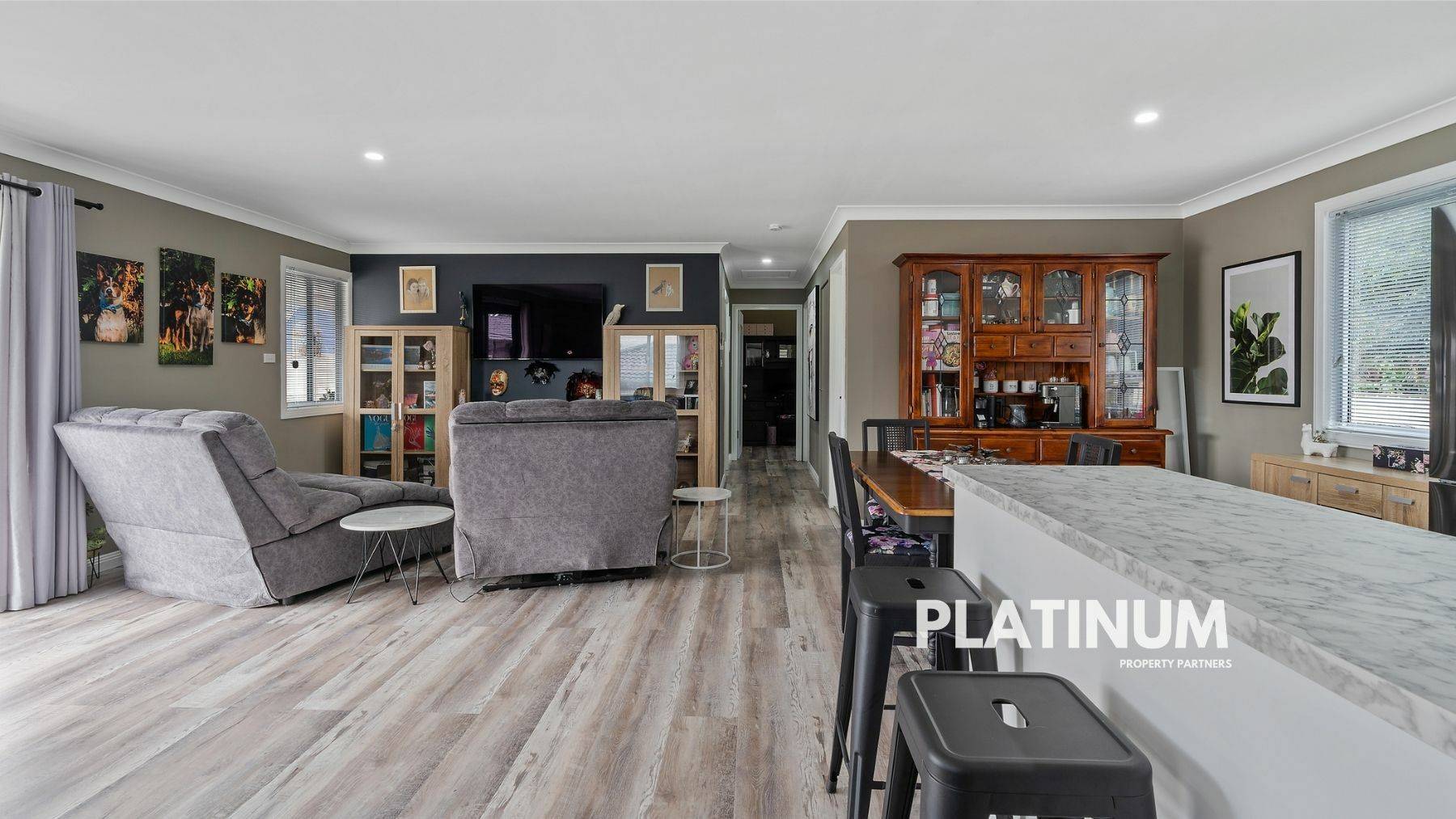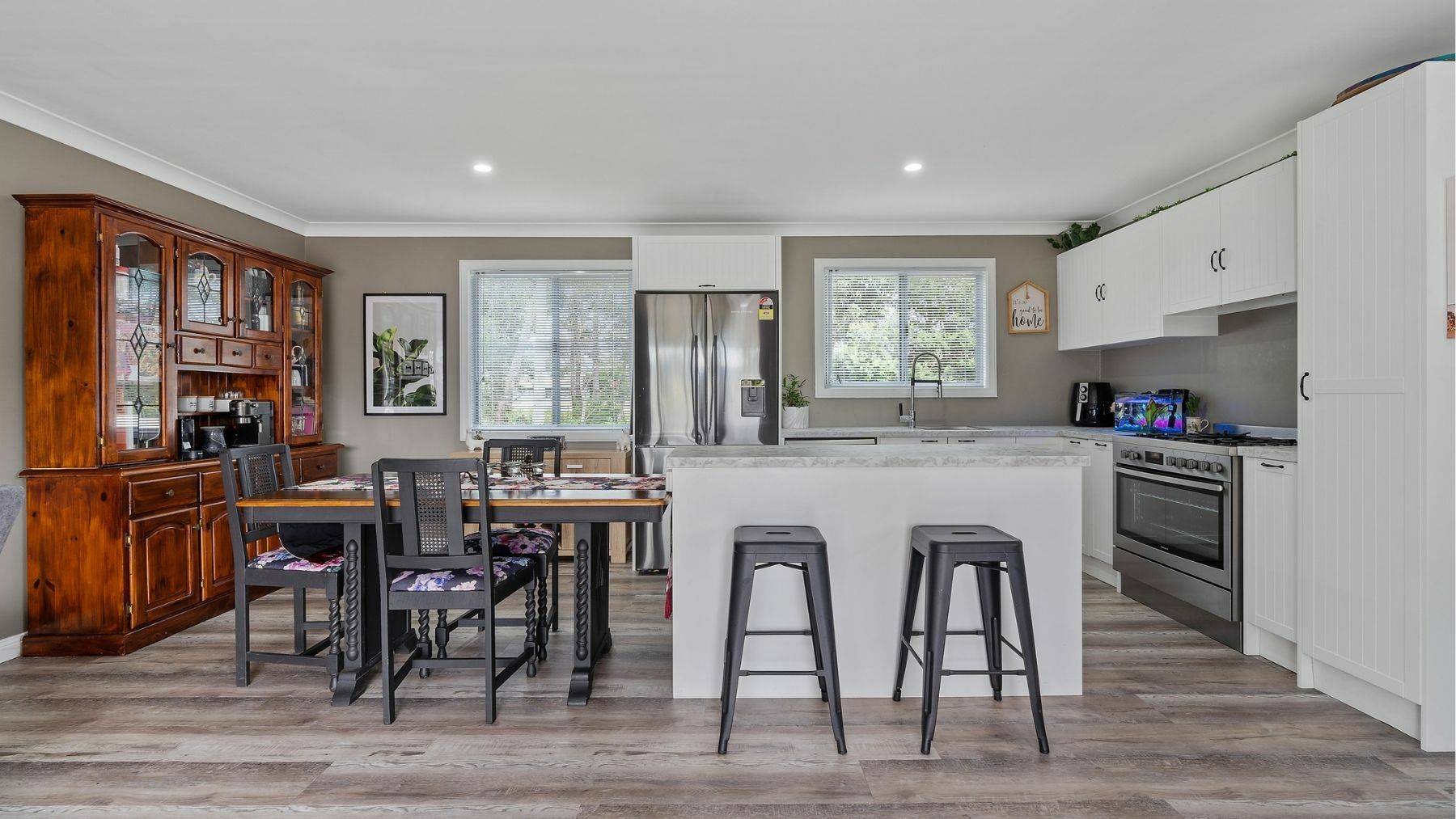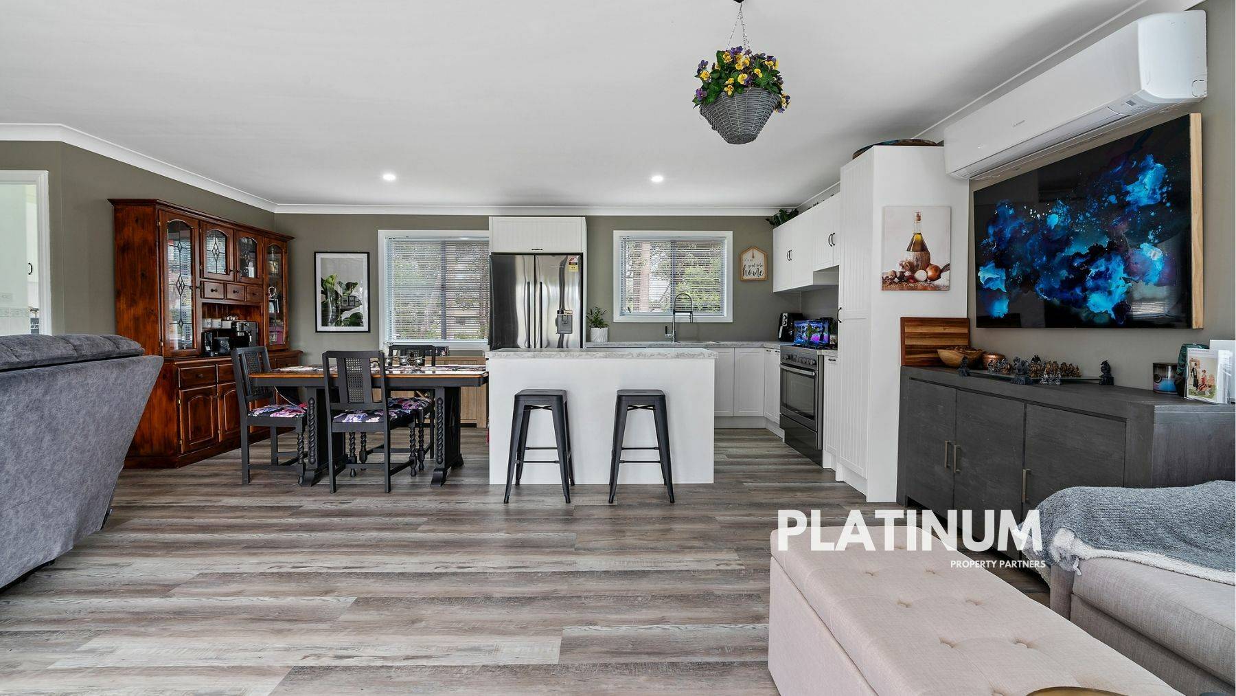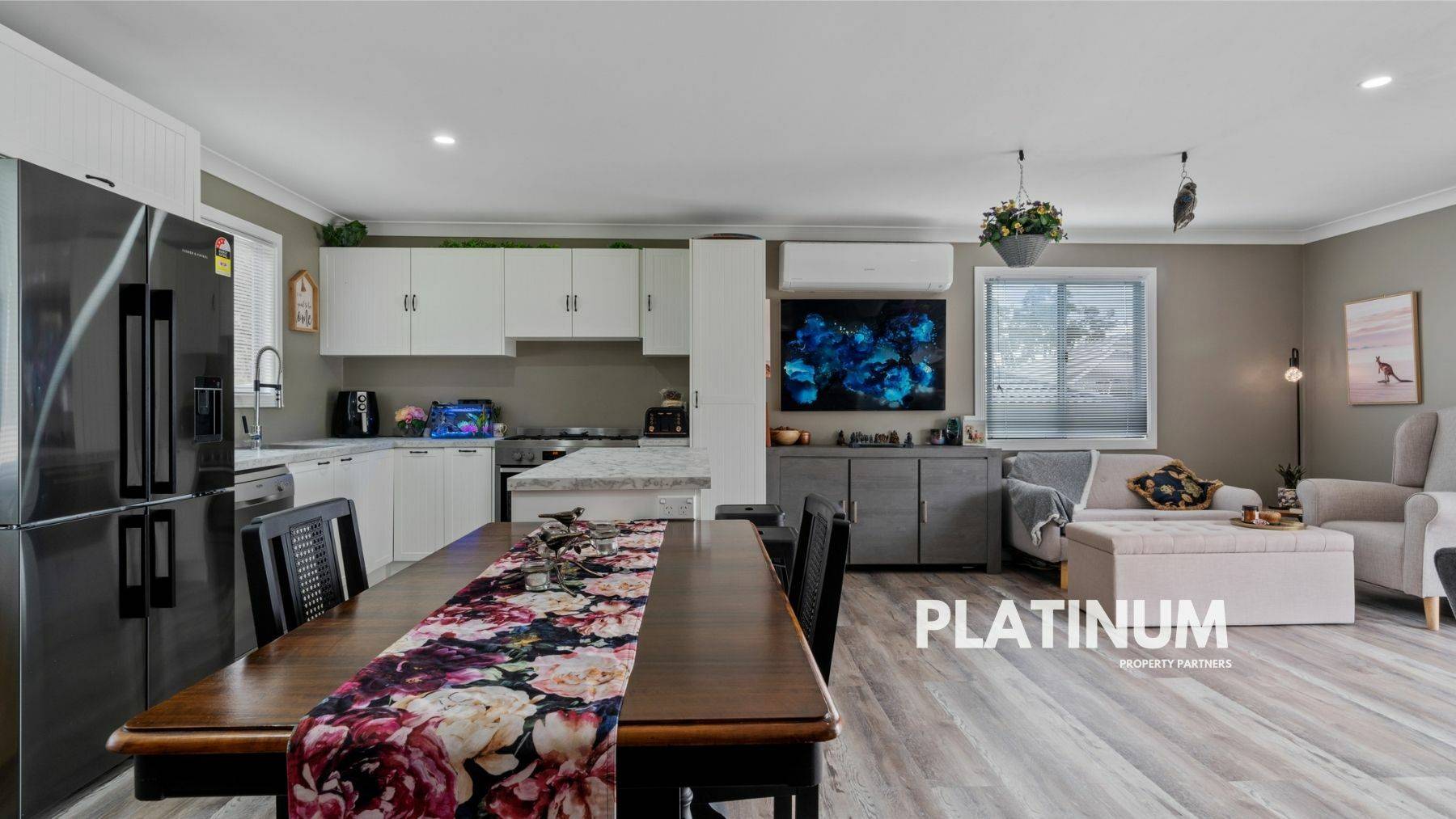 It's in here that you really get the sense this is a well loved home with tasteful modern touches. There is a new split system A/C, the flooring is a high quality waterproof and scratch proof vinyl plank, downlights, fresh paint on the ceilings and walls, and there are new blinds on all windows.