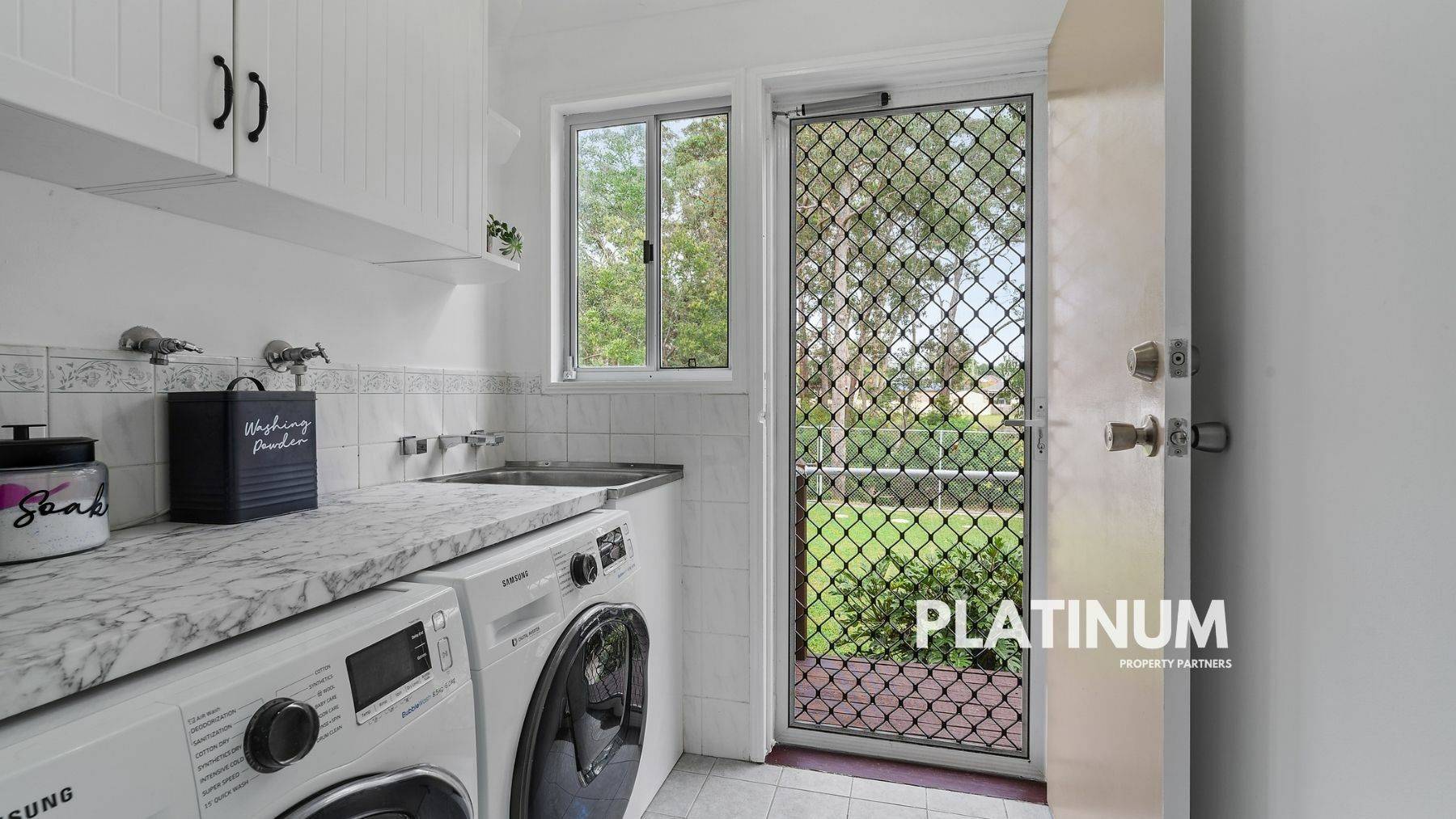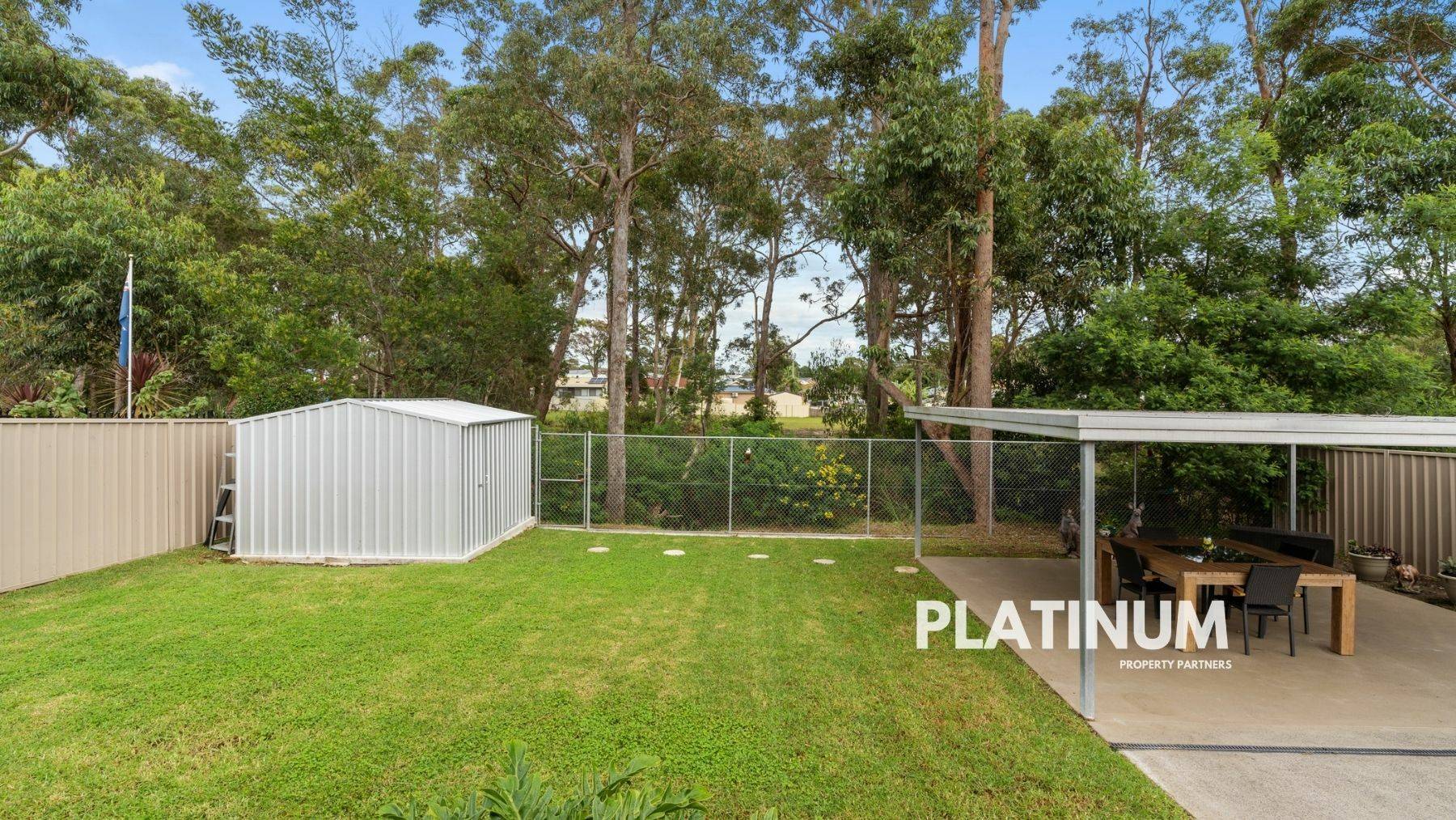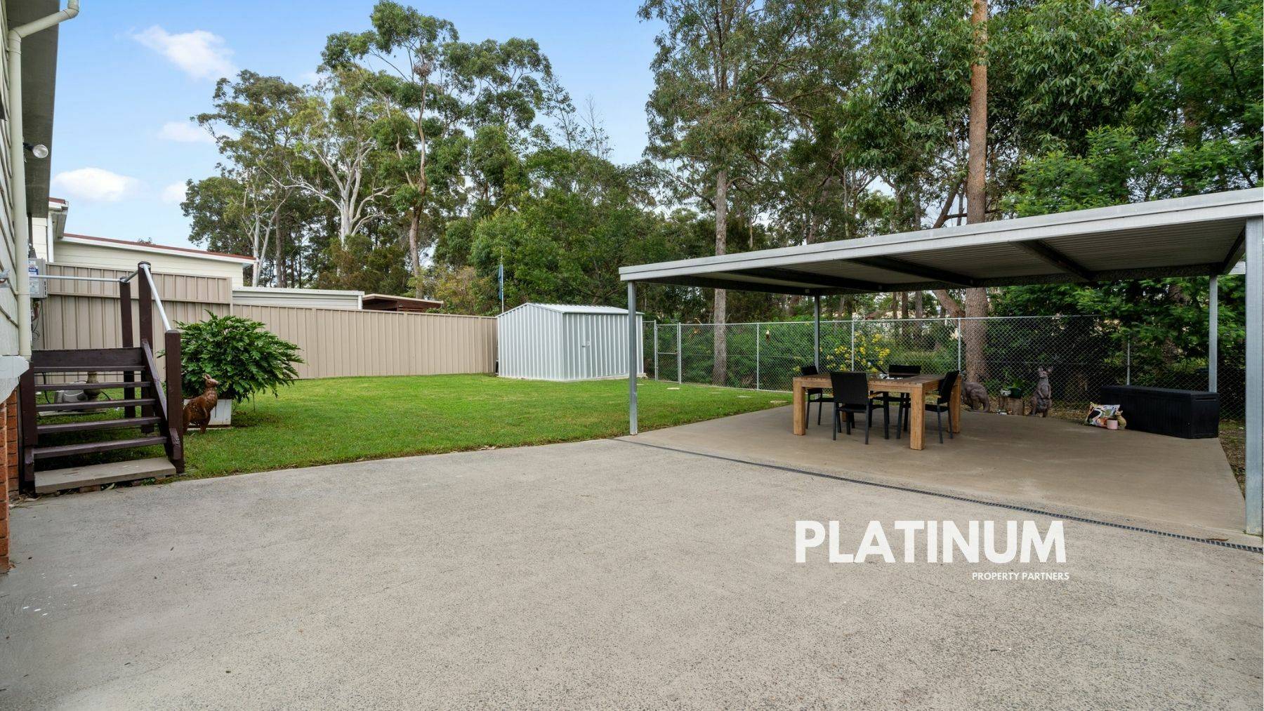 Then via the renovated laundry you can head out into your backyard. Now this is fully fenced and has plenty of room for kids and dogs to play. There is also a new garden shed and concrete slab, and the carport that makes a great outdoor entertaining area. But the big bonus here is that the property sits on a reserve. So all you see out the back are trees and the local wildlife.