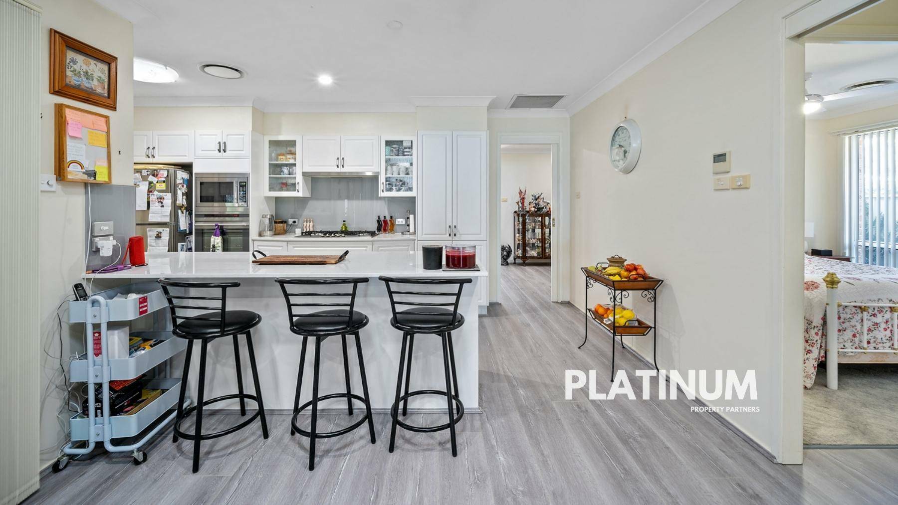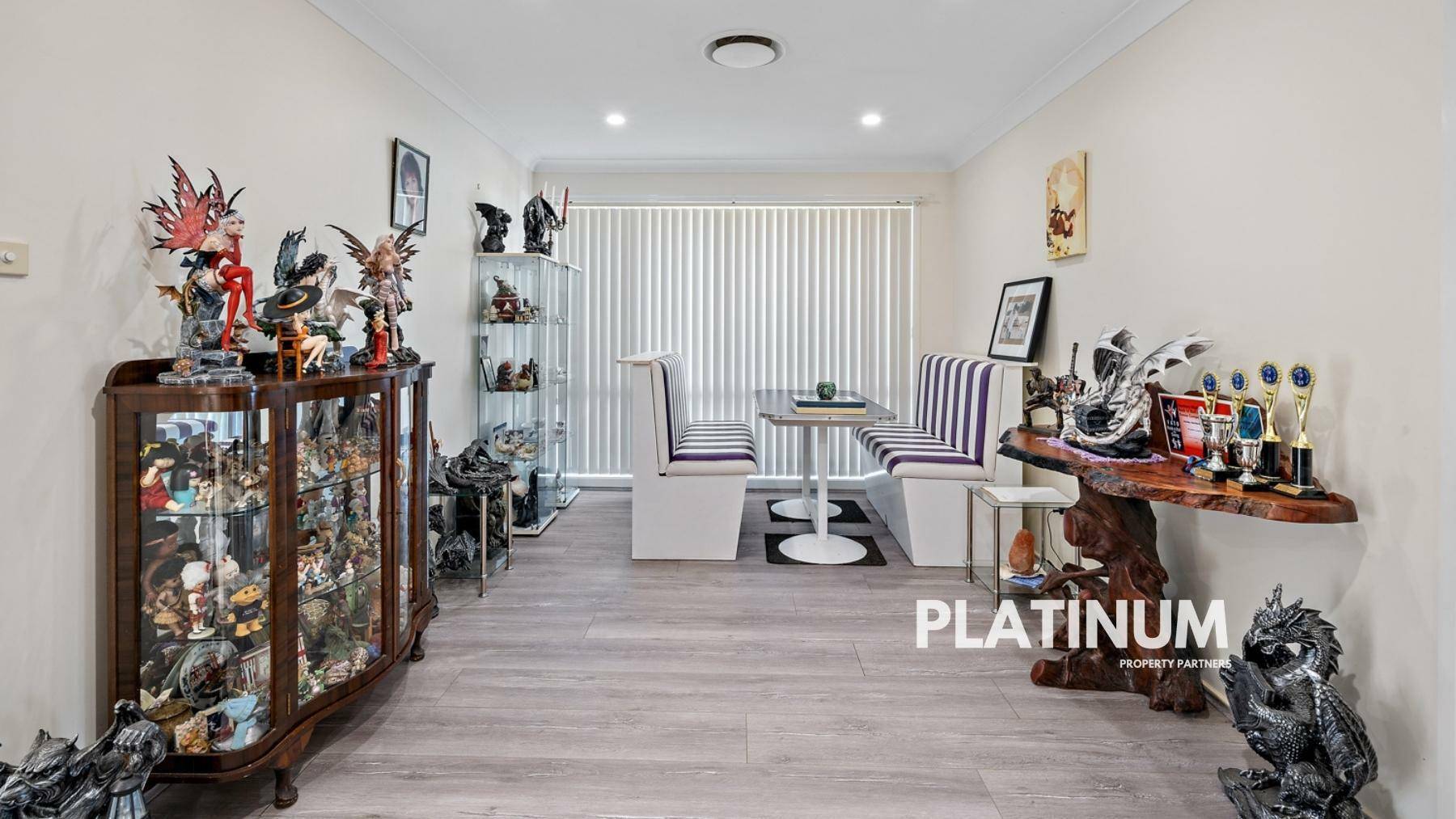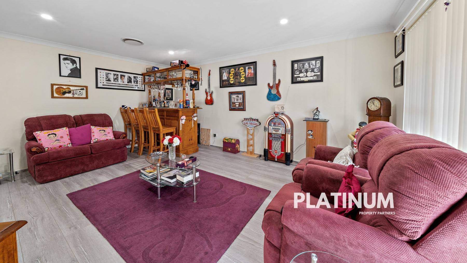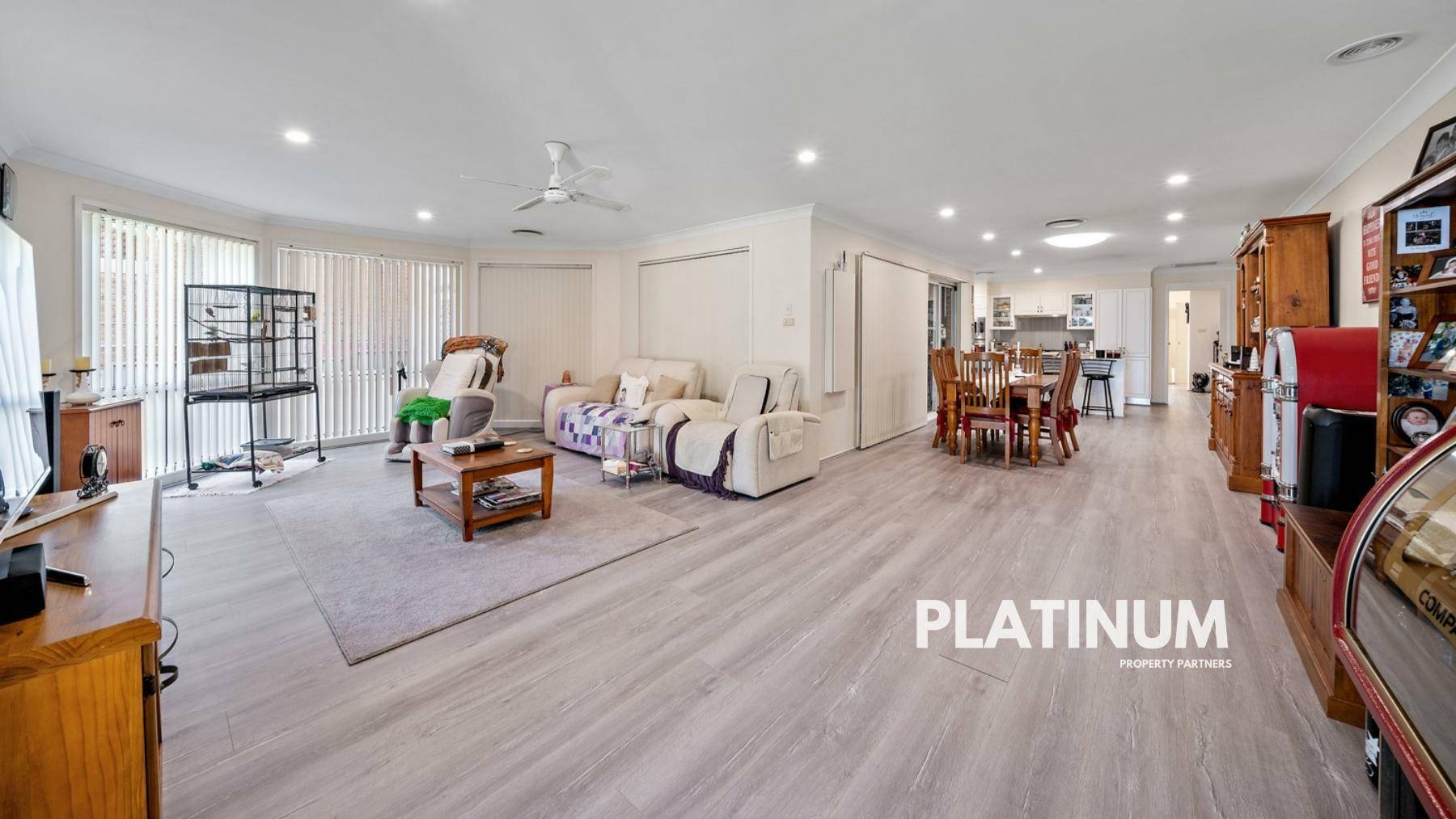 As you head in the front door you will find a large formal living space on your right. In this room you will find large windows for natural light, and enough space for a bar and lounges! The flooring is an easy care hybrid floor board and this continues throughout the home.