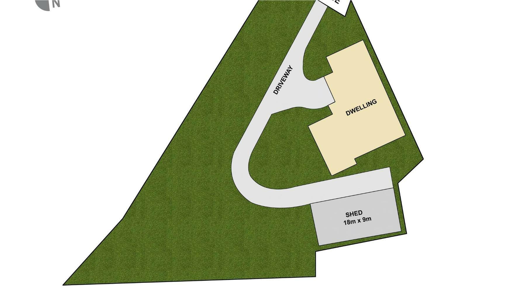 • Large 18x9m shed serviced by a 3m bitumen driveway.