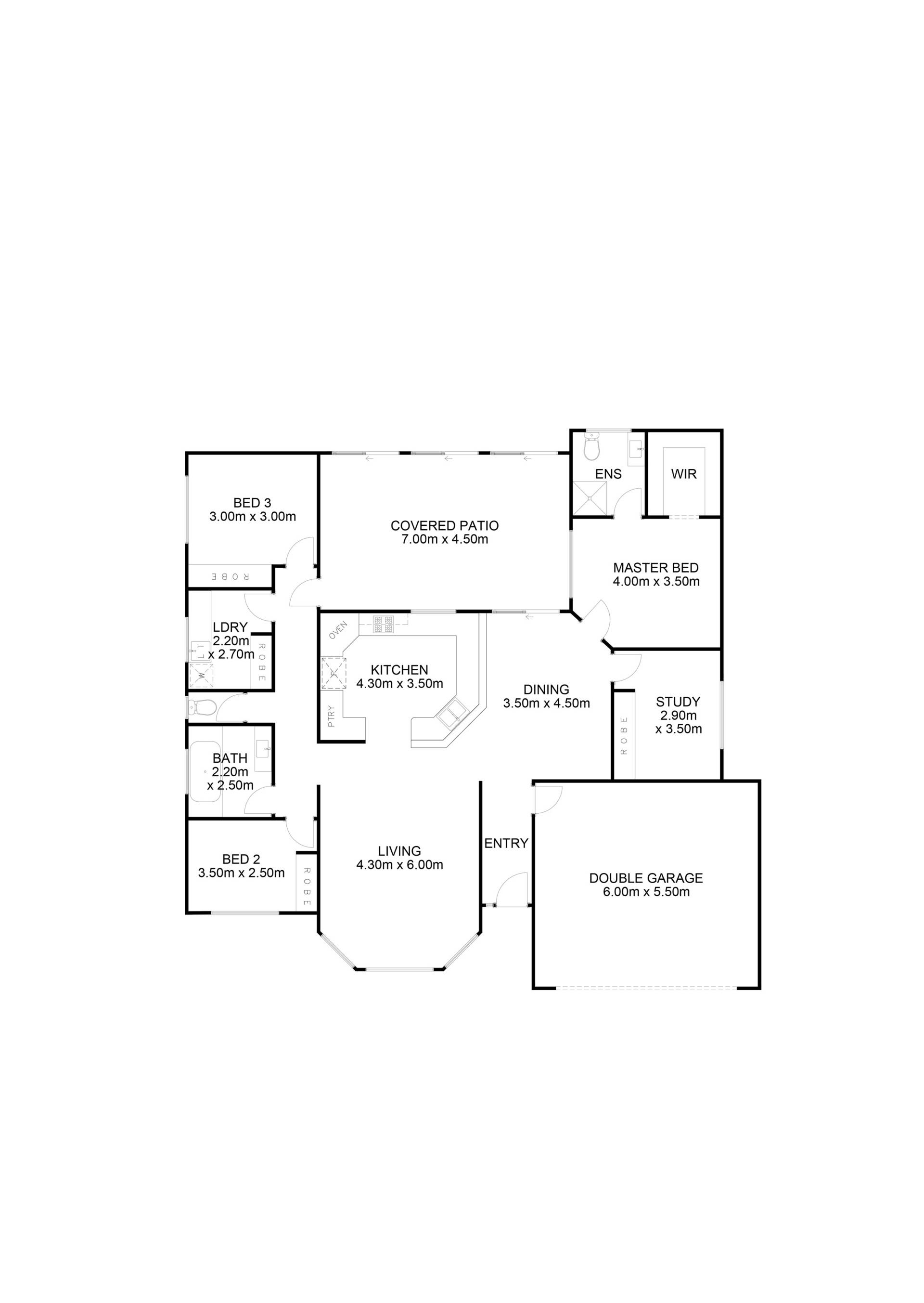 serviced by a centrally located bathroom that features a spa bath, shower and vanity. The toilet is separate, adding to the overall practical design. On the other side of the house you will find the third bedroom and the master. The