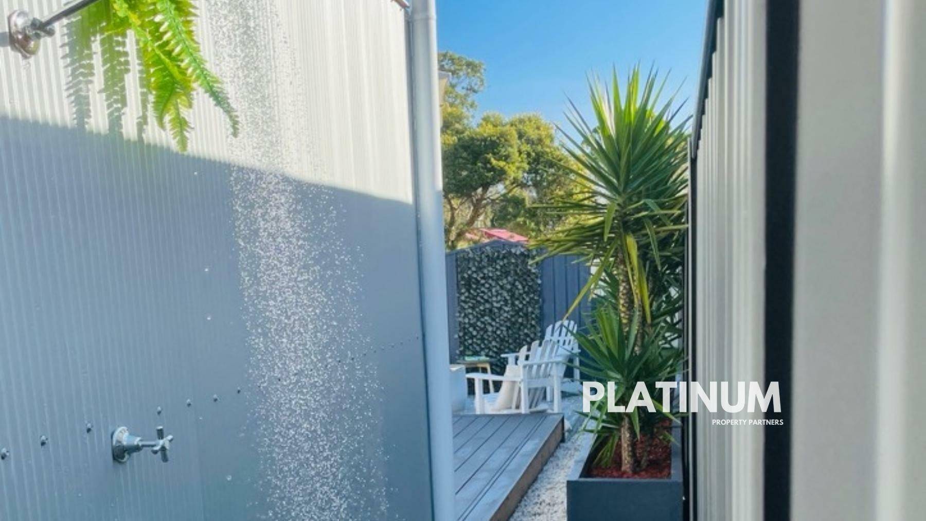 All of this is set on a generous 600 square metre block, providing plenty of space both inside and out. The location is equally impressive, sitting just one street back from the water, with a glimpse of the water visible from the rear deck and an outdoor shower to really feel like you’re at a retreat.