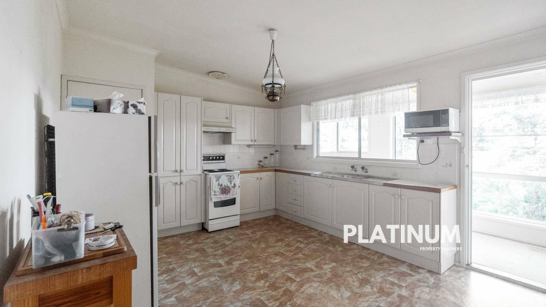 From here you can find your way to the kitchen. Now the kitchen is large, and features plenty of bench space, electric cooking, a built-in pantry and views of the basin outside the kitchen window.  The kitchen looks directly into what used to be an open verandah that has now been closed in, so it's fully protected from the weather yet still offers fantastic views of the nature around you and the always sparkling waters of the basin.  The enclosed veranda also features a sun-filled area around the corner that would serve perfectly as a study or craft room.