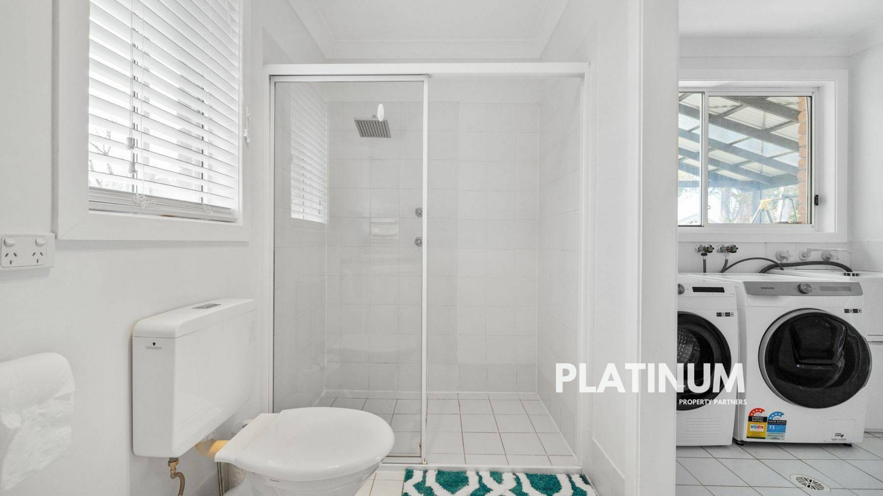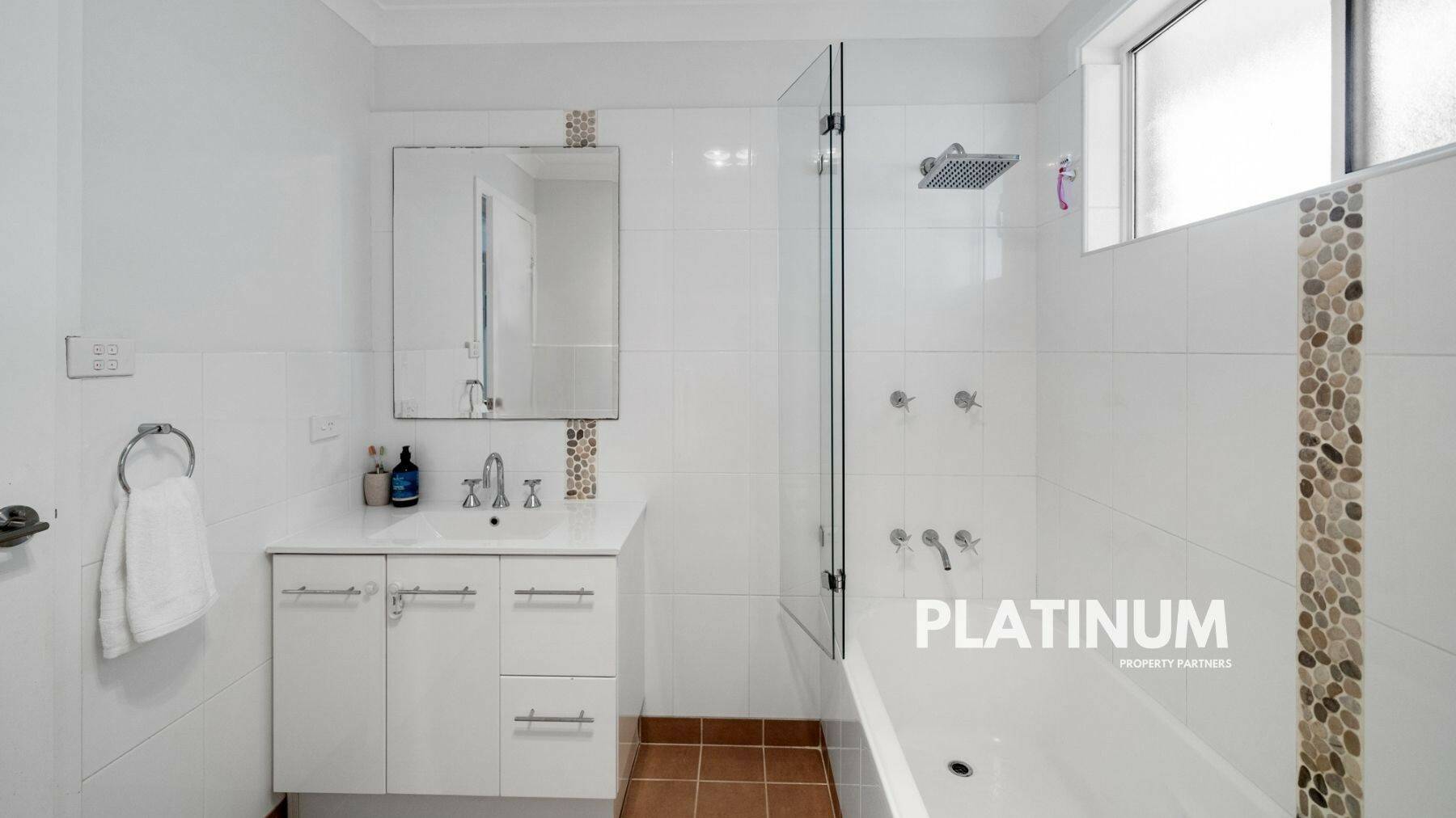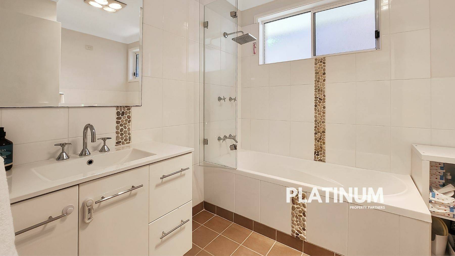 Down the hallway, each of the three bedrooms are generously sized, two with built-in robes and north-facing soaking in the sun year round. The main bathroom comes equipped with a glass-panelled shower, bath and toilet.
