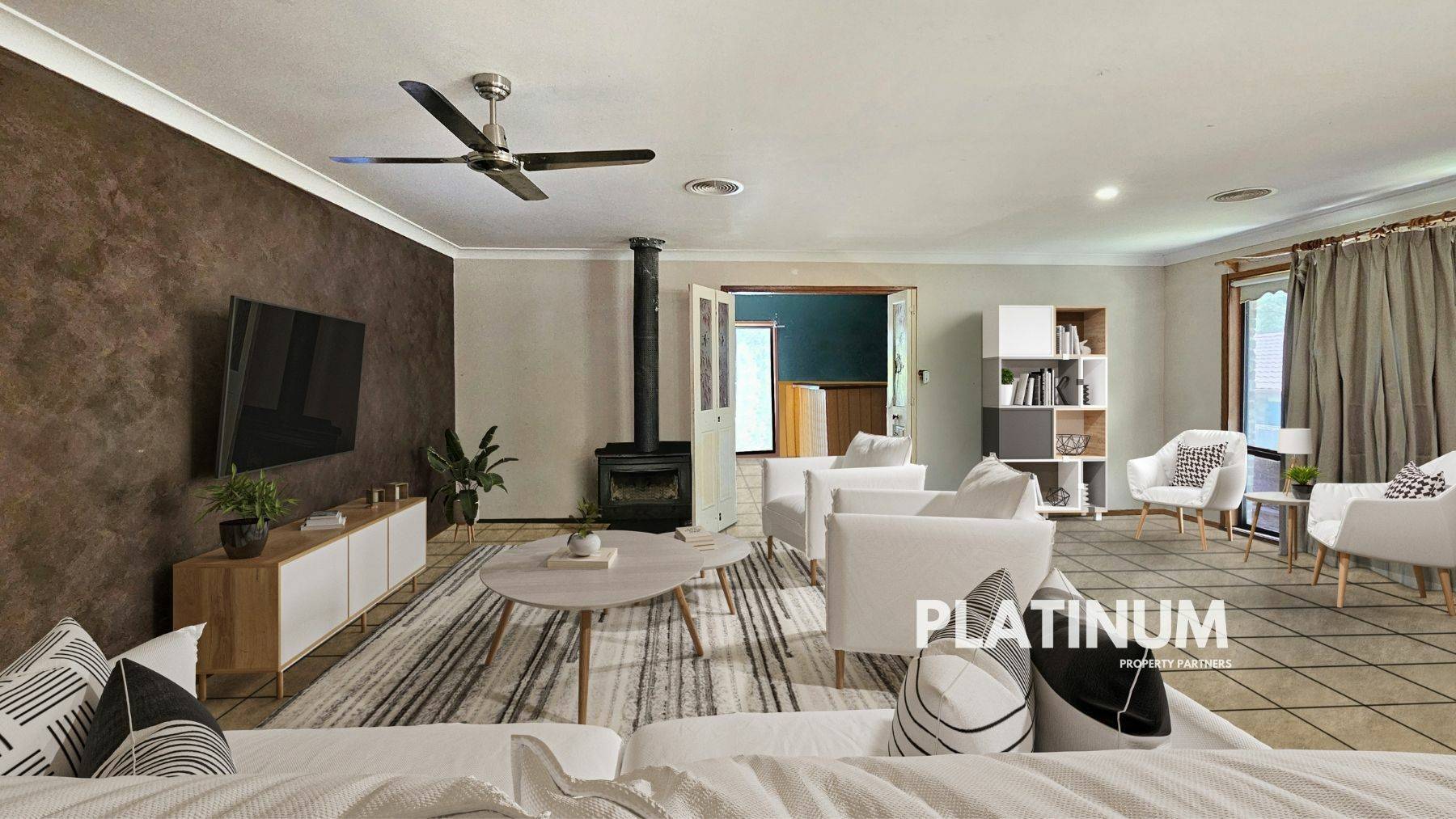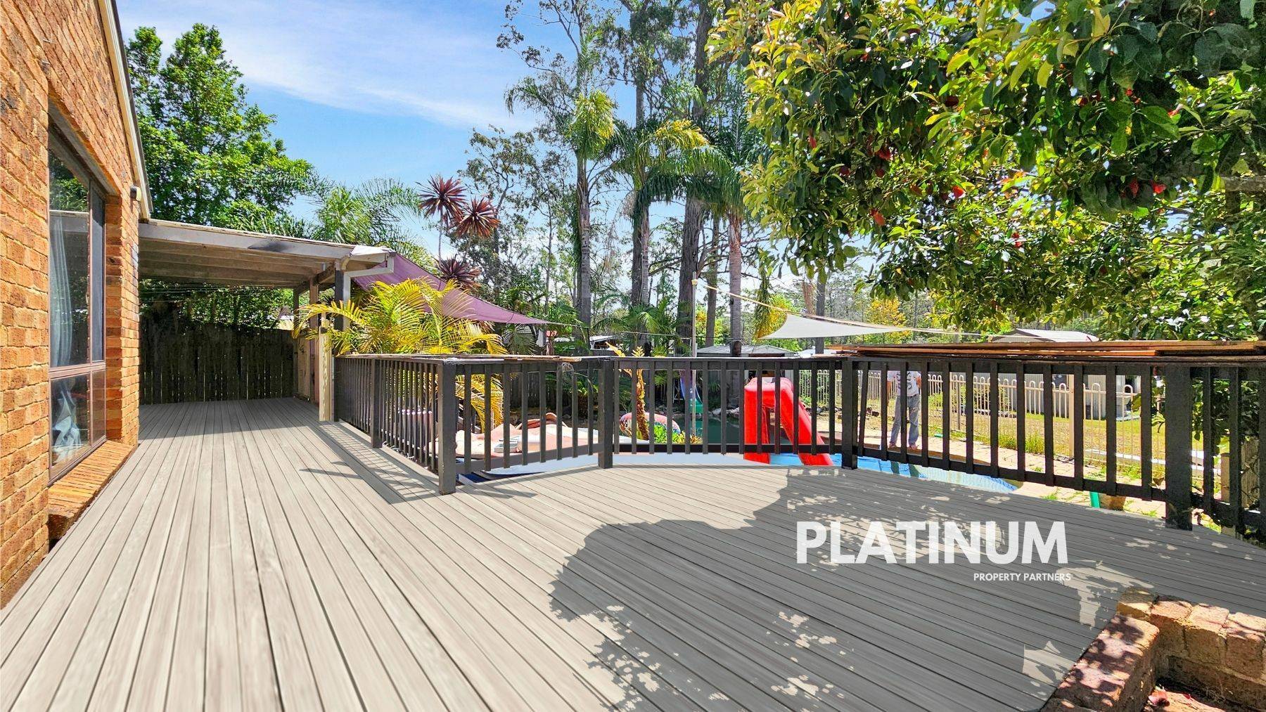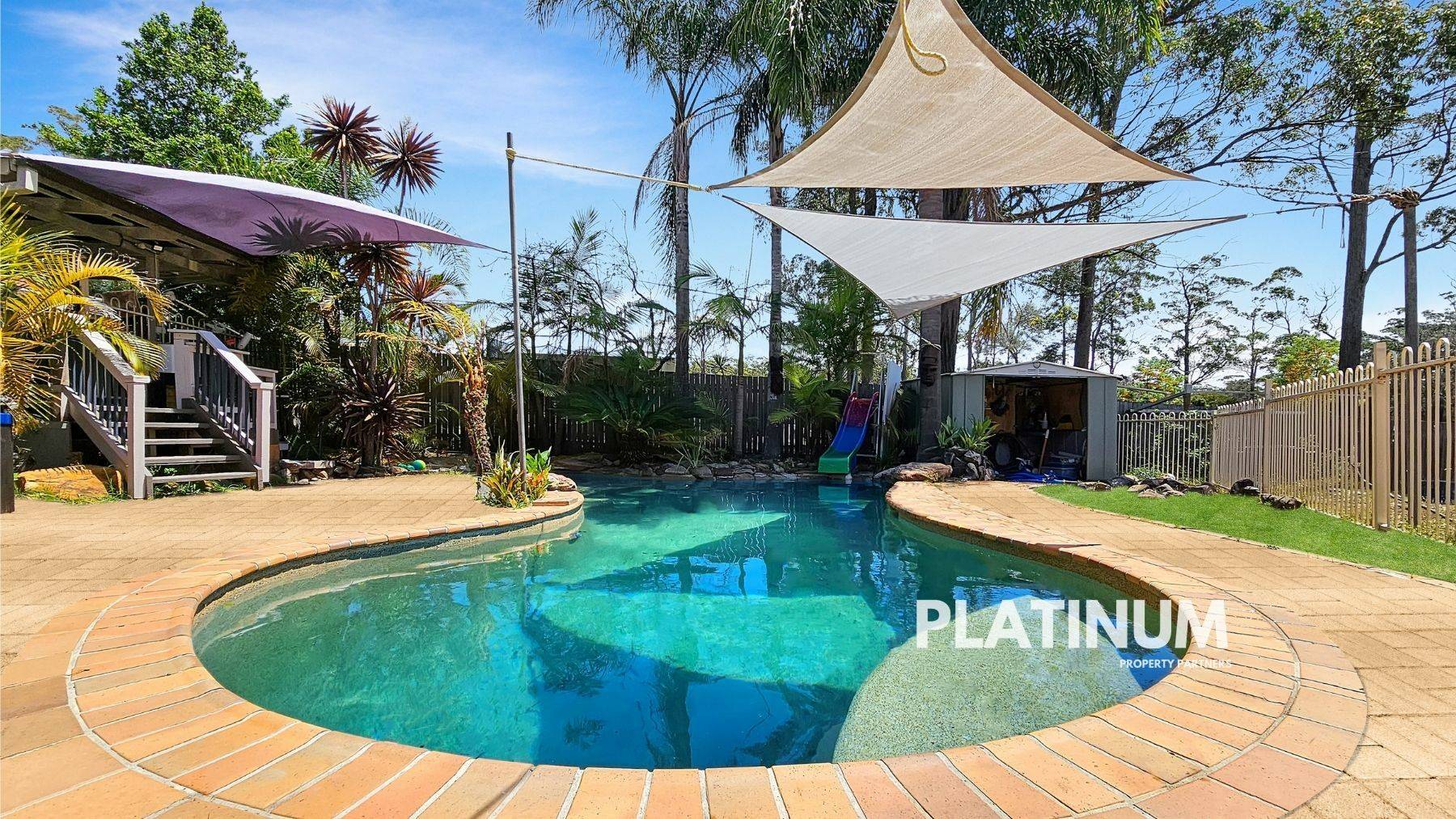 Entertain in style with the undercover outdoor deck, which overlooks the swimming pool and lush backyard. With side access to the vast backyard, there is ample room to store caravans or boats, complemented by a three-bay garage situated at the rear of the property.