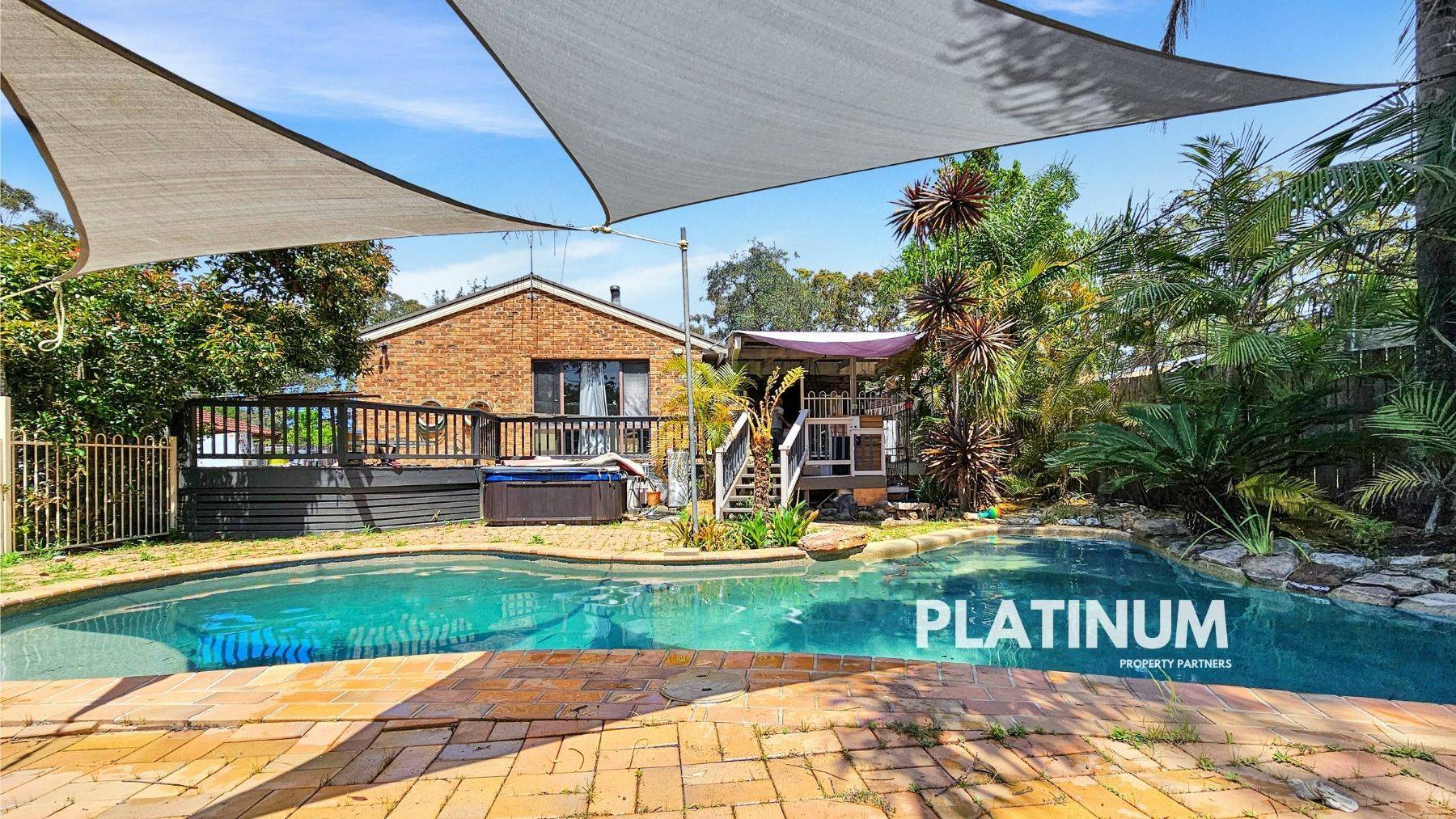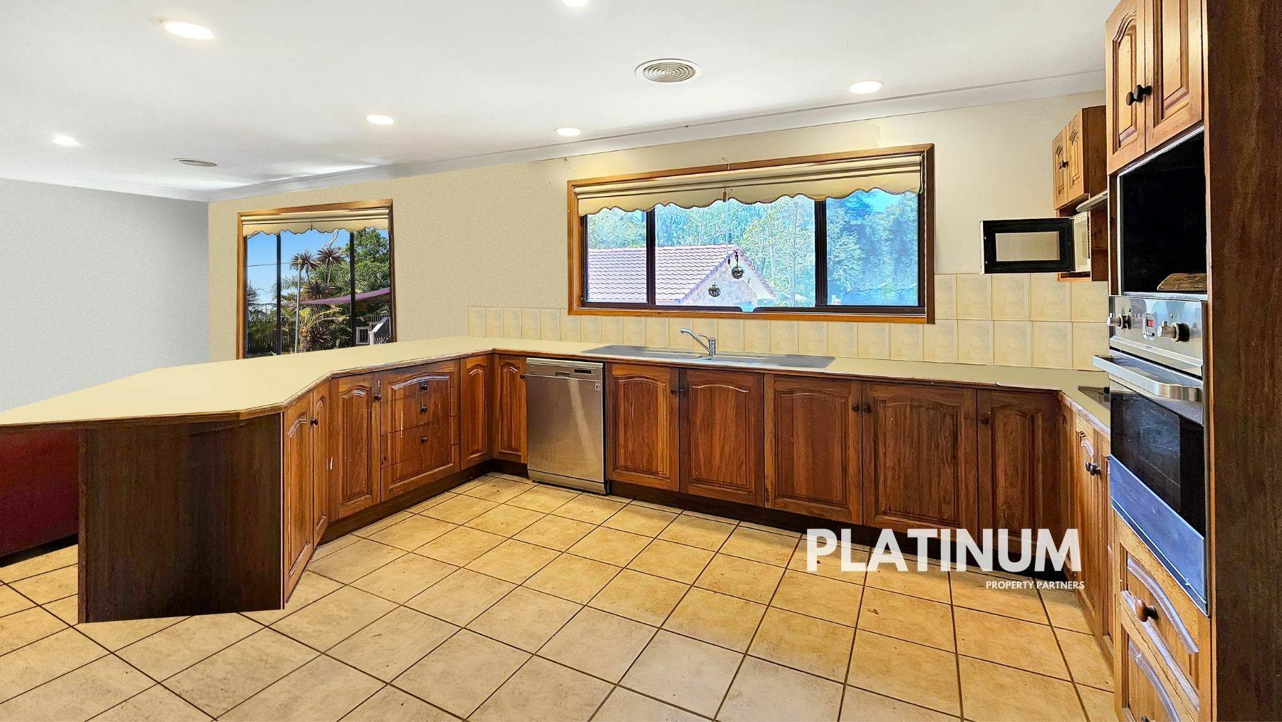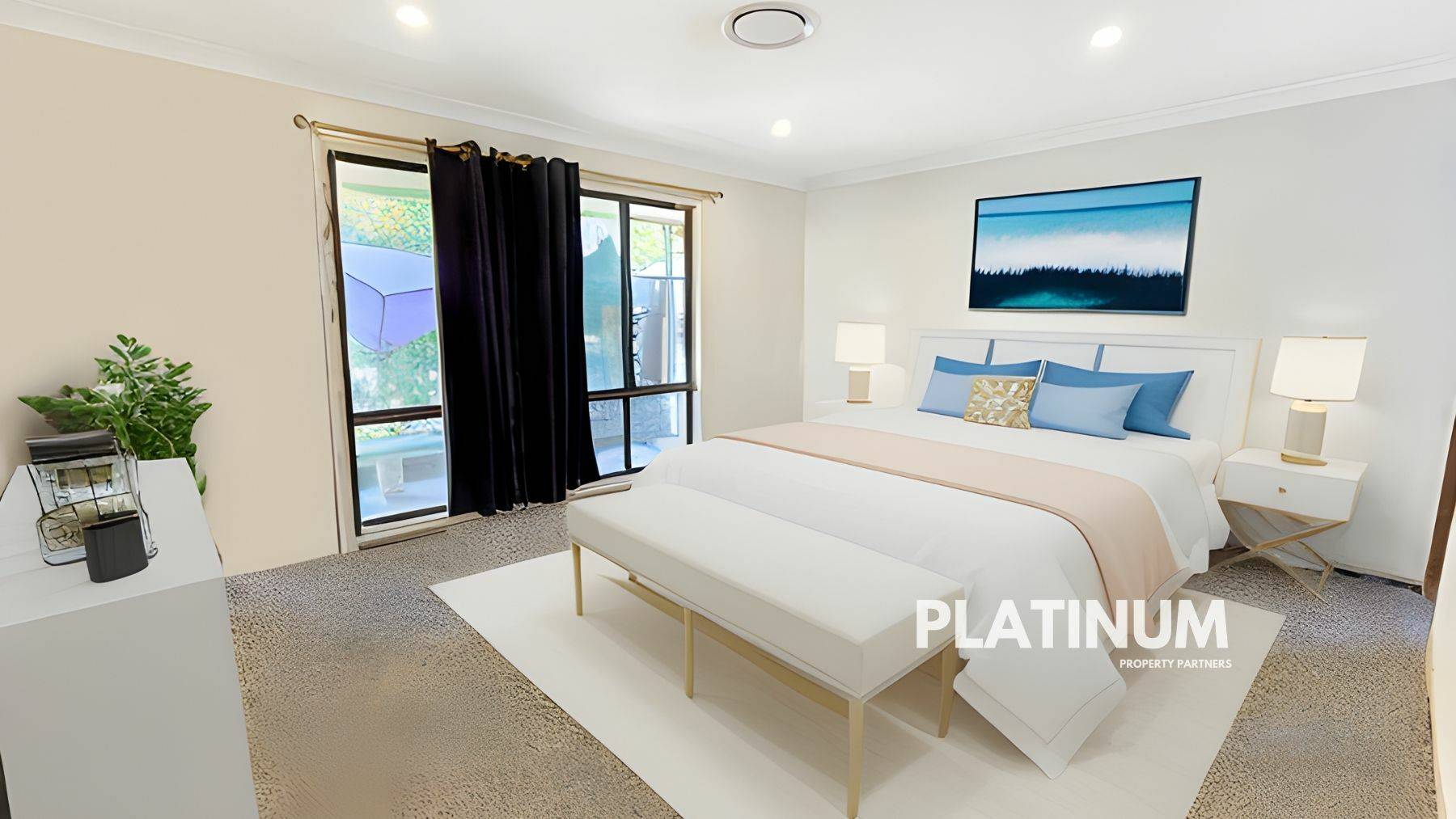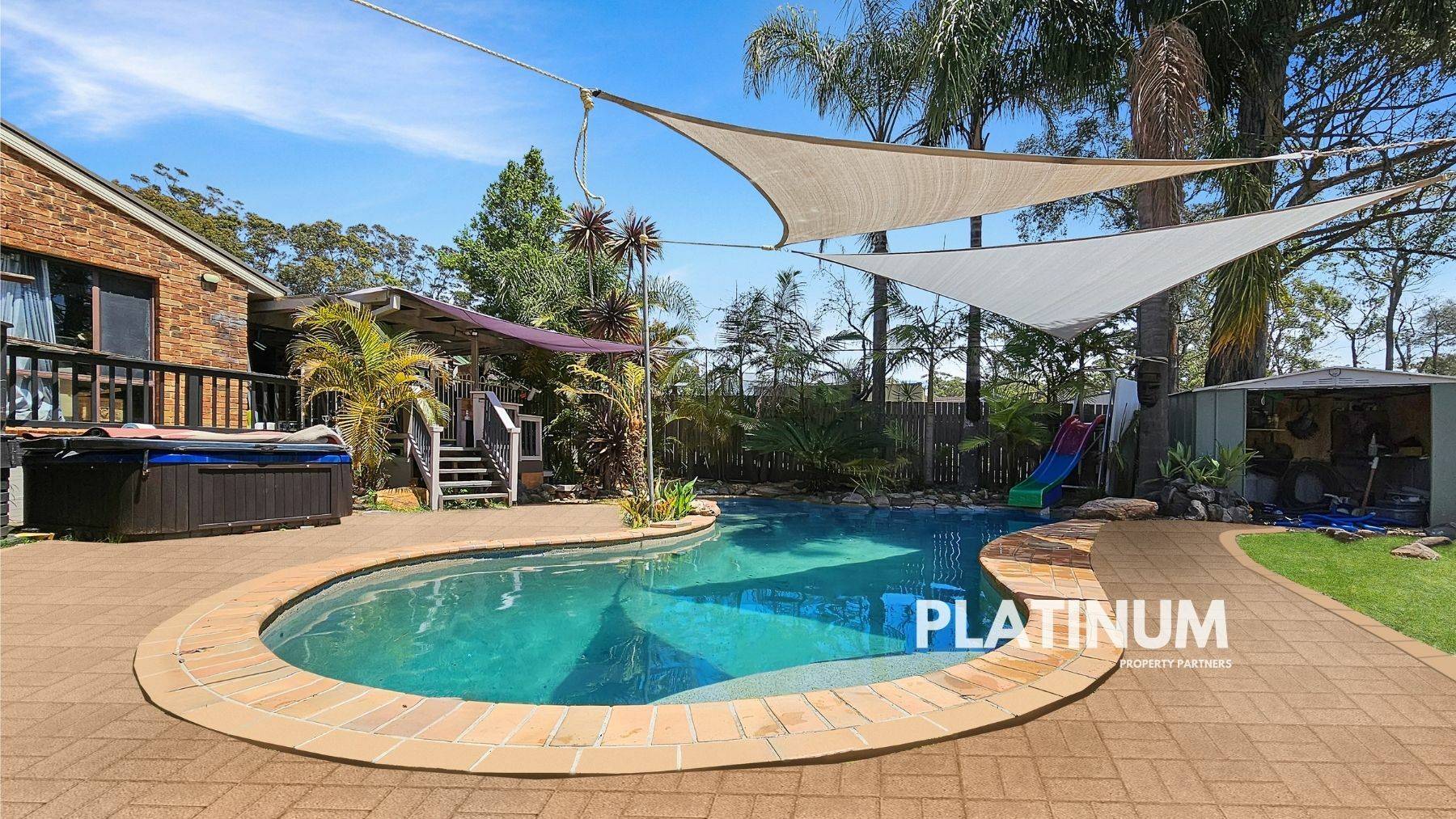Entertain in style with the undercover outdoor deck, which overlooks the swimming pool and lush backyard. With side access to the vast backyard, there is ample room to store caravans or boats, complemented by a three-bay garage situated at the rear of the property.