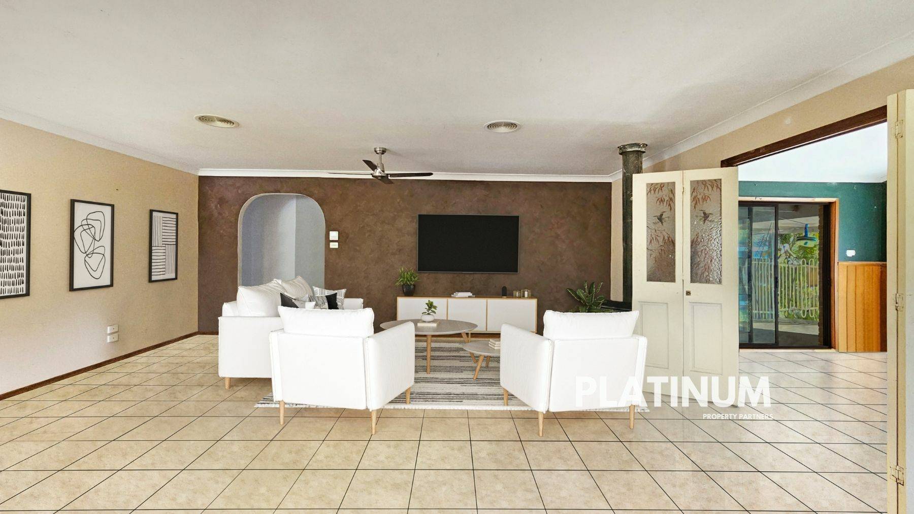 Set on an impressive 1,347 square metres of land, the property boasts a spacious front living and dining area, seamlessly flowing into a contemporary open plan kitchen with a walk-in pantry. The heart of the home is the generous second living and dining area, perfectly complemented by a magnificent bar with high raked ceilings, overlooking the resort-style solar heated swimming pool.