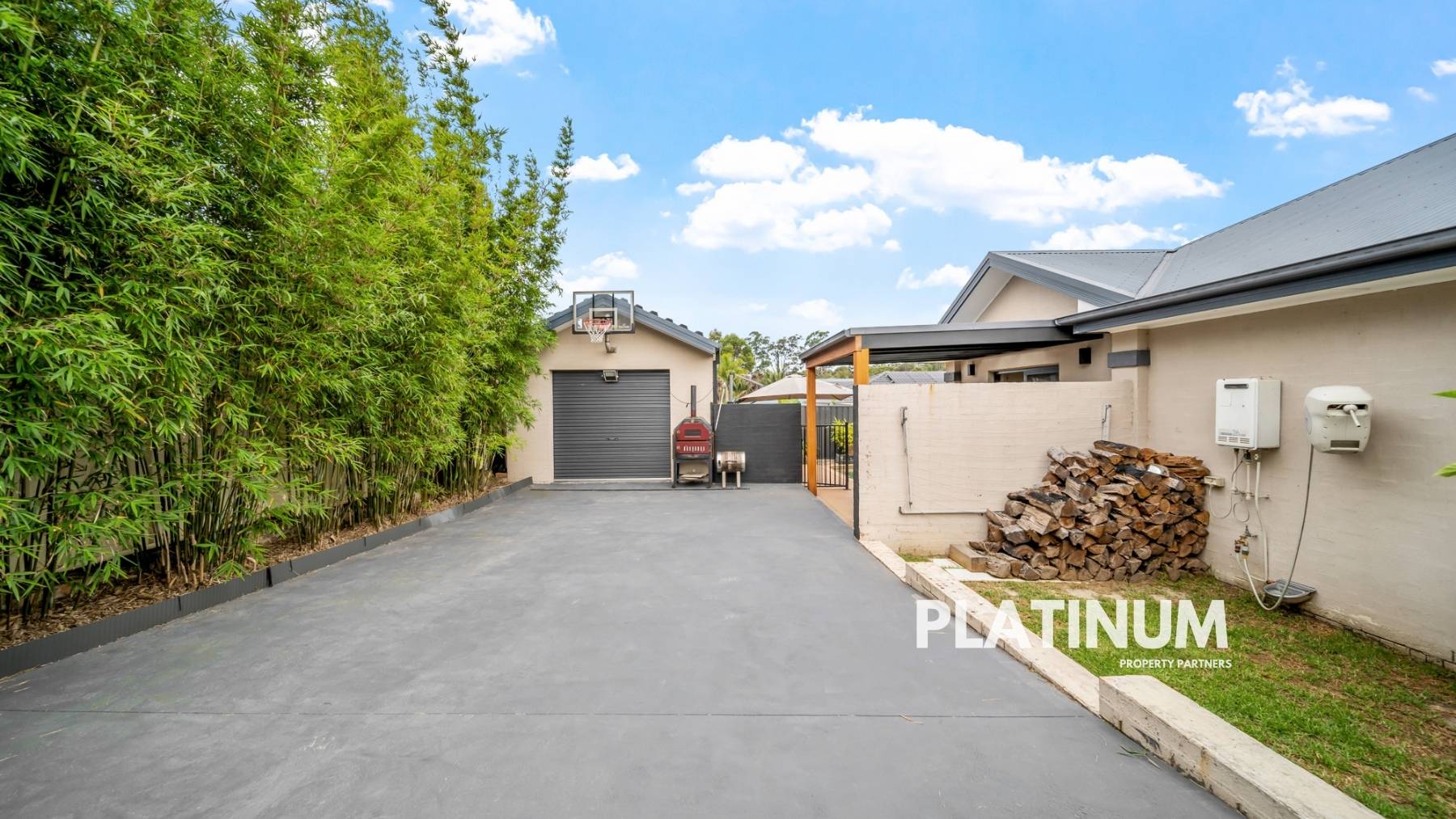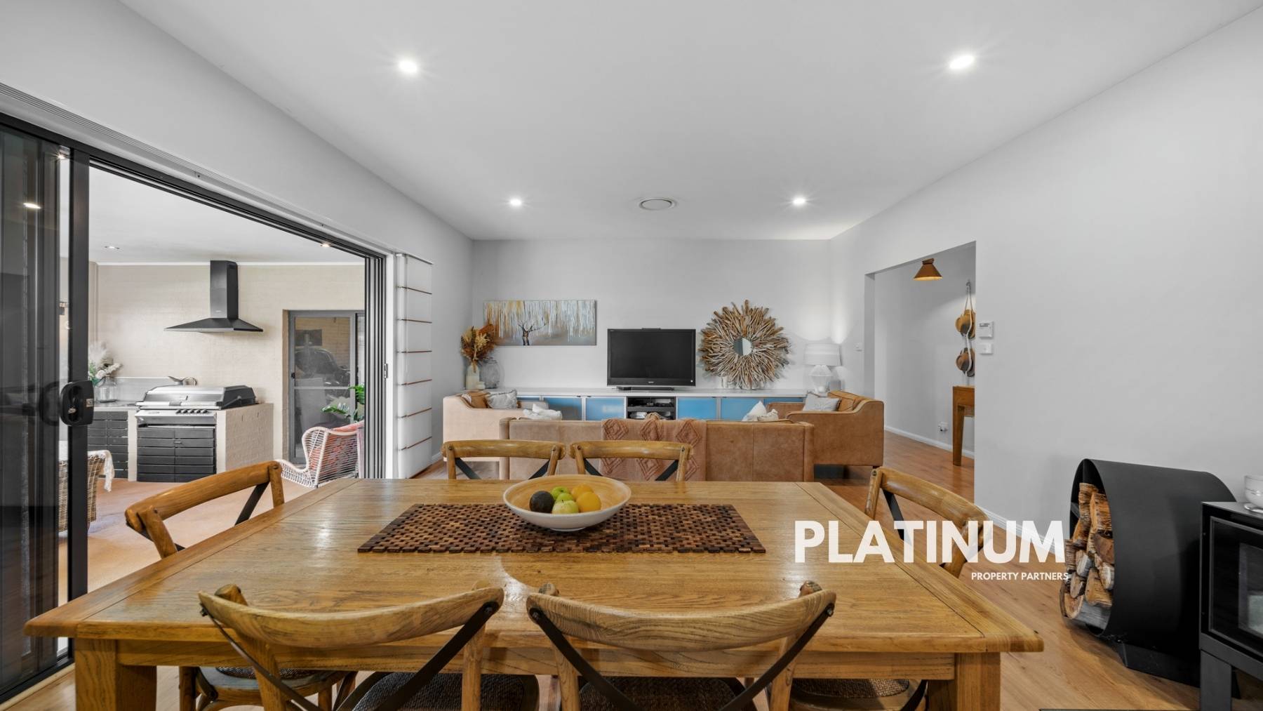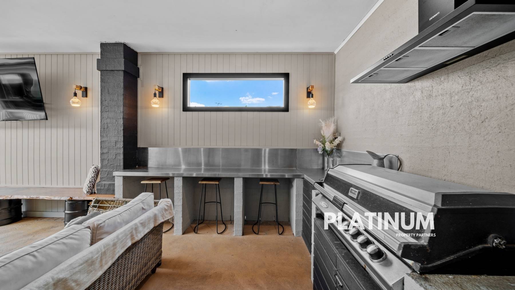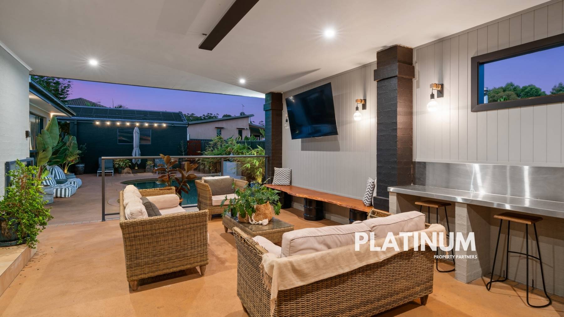 The epitome of entertainment awaits outside, where a vast undercover area overlooks the inground swimming pool, creating an inviting retreat for guests. This outdoor sanctuary is fully equipped with a kitchen, heater, power, TV point, and an elegantly clad feature wall – perfect for year-round enjoyment.