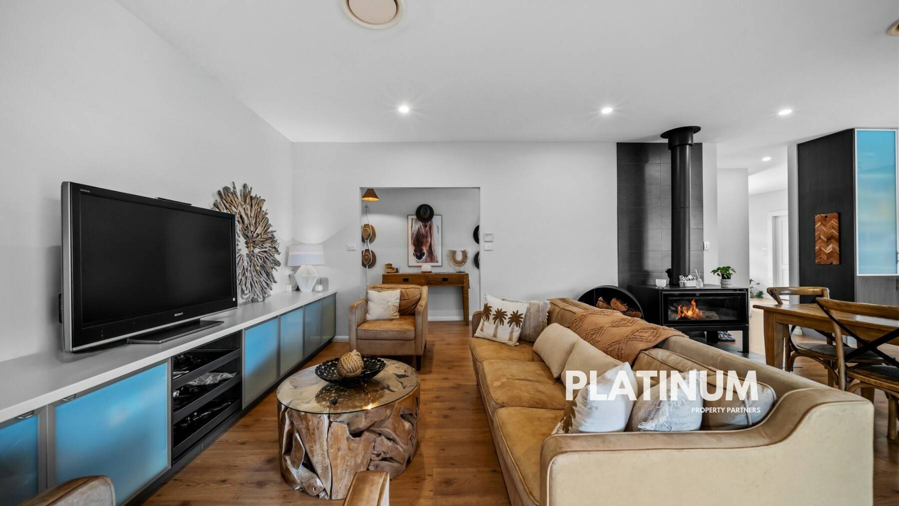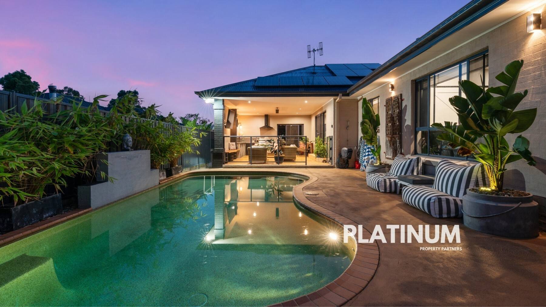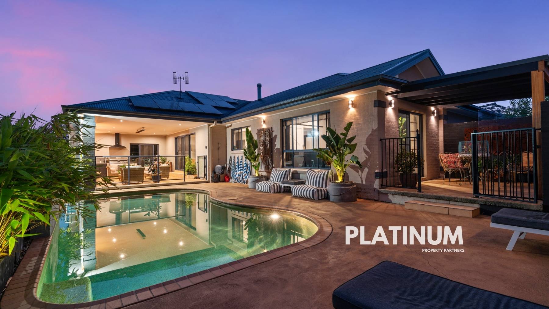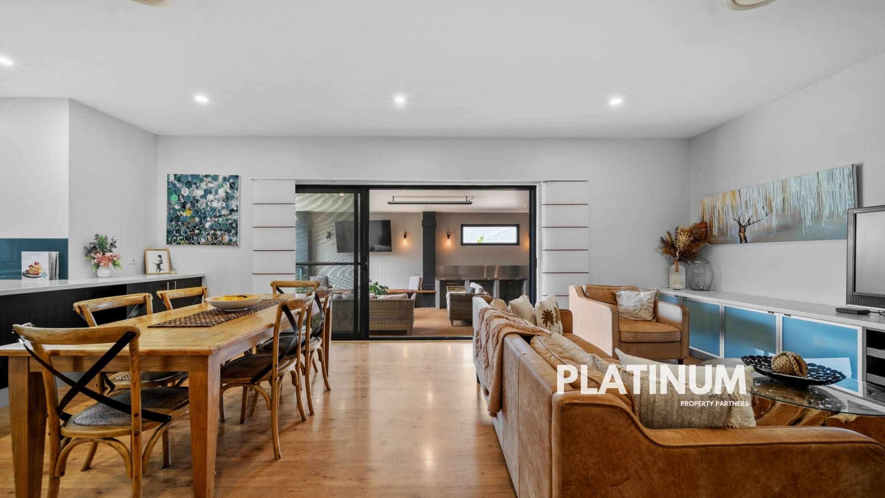 The epitome of entertainment awaits outside, where a vast undercover area overlooks the inground swimming pool, creating an inviting retreat for guests. This outdoor sanctuary is fully equipped with a kitchen, heater, power, TV point, and an elegantly clad feature wall – perfect for year-round enjoyment.