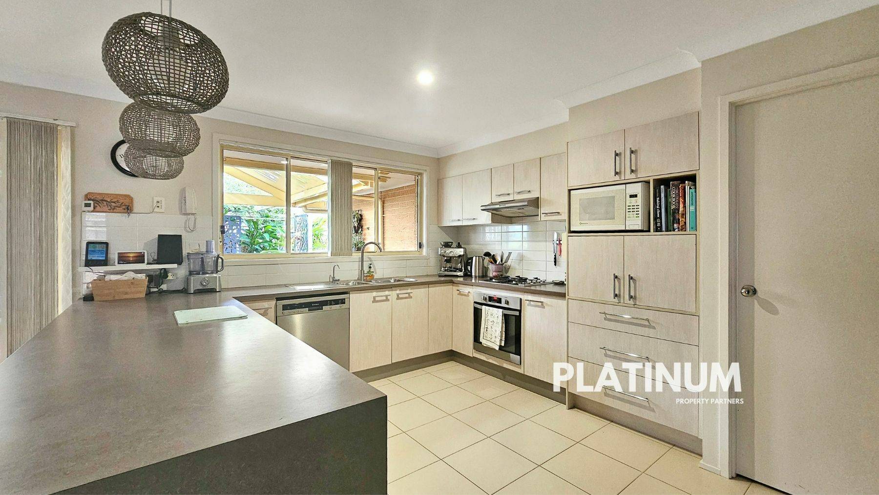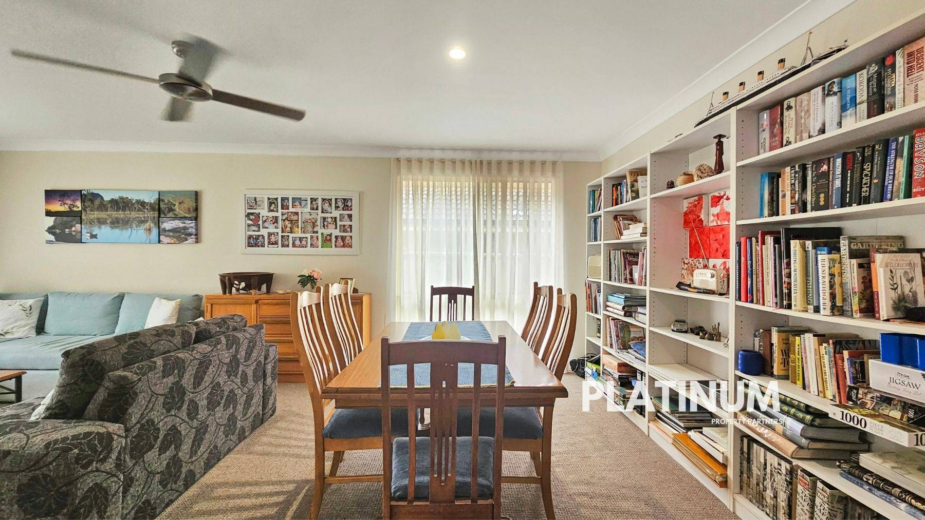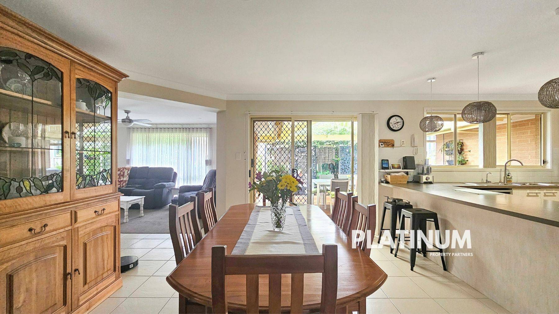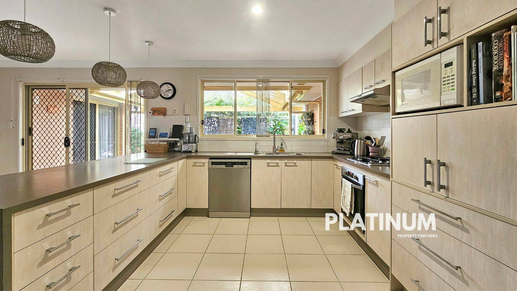 The heart of the home is an open-plan kitchen, dining, and living area, designed to bring everyone together. The kitchen is a chef's dream with ample storage, expansive bench space, modern appliances including a dishwasher, gas cooktop, and stylish pendant lighting. This central hub flows effortlessly onto the dining space, making it a breeze to host gatherings or enjoy intimate family meals.