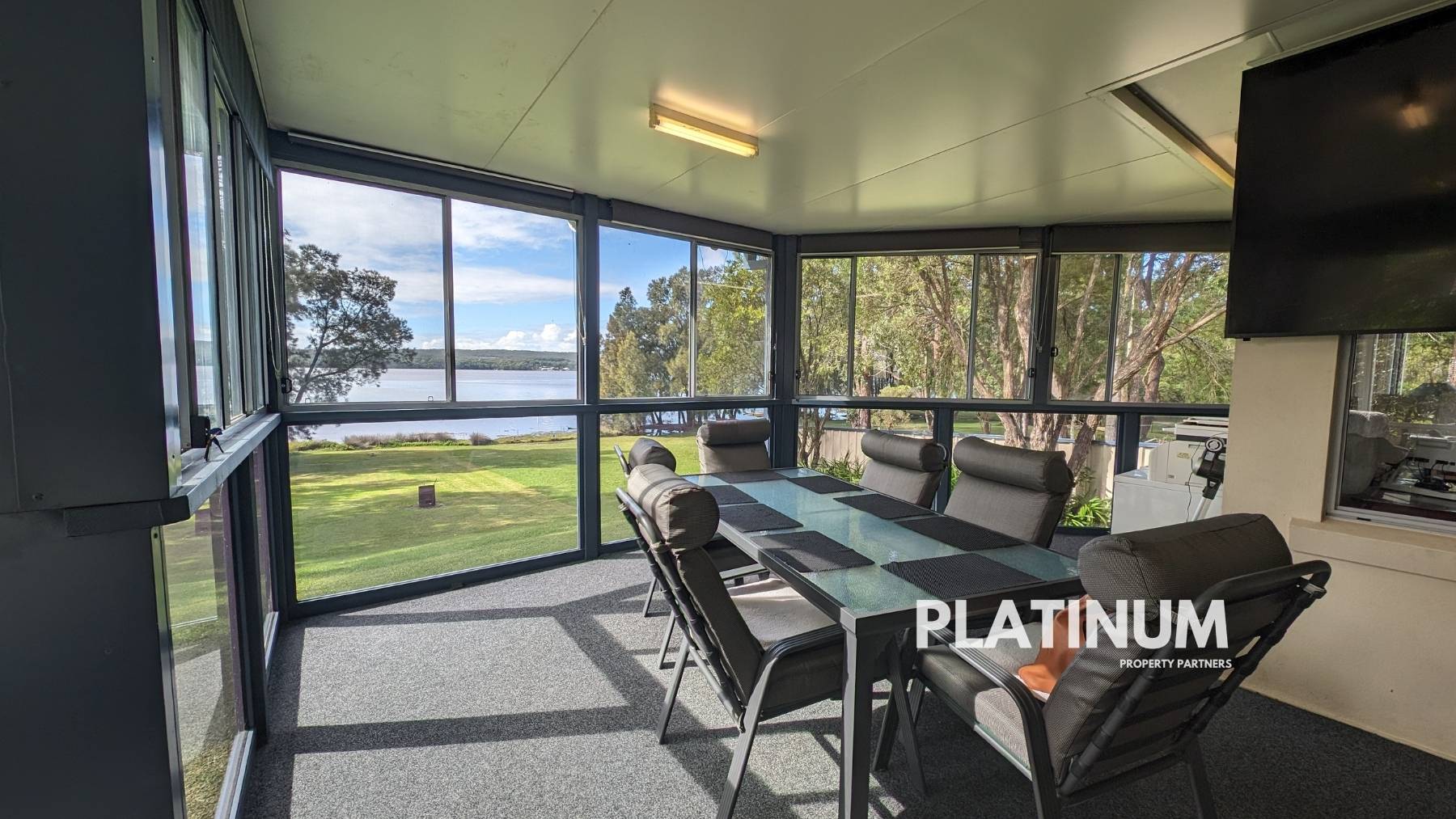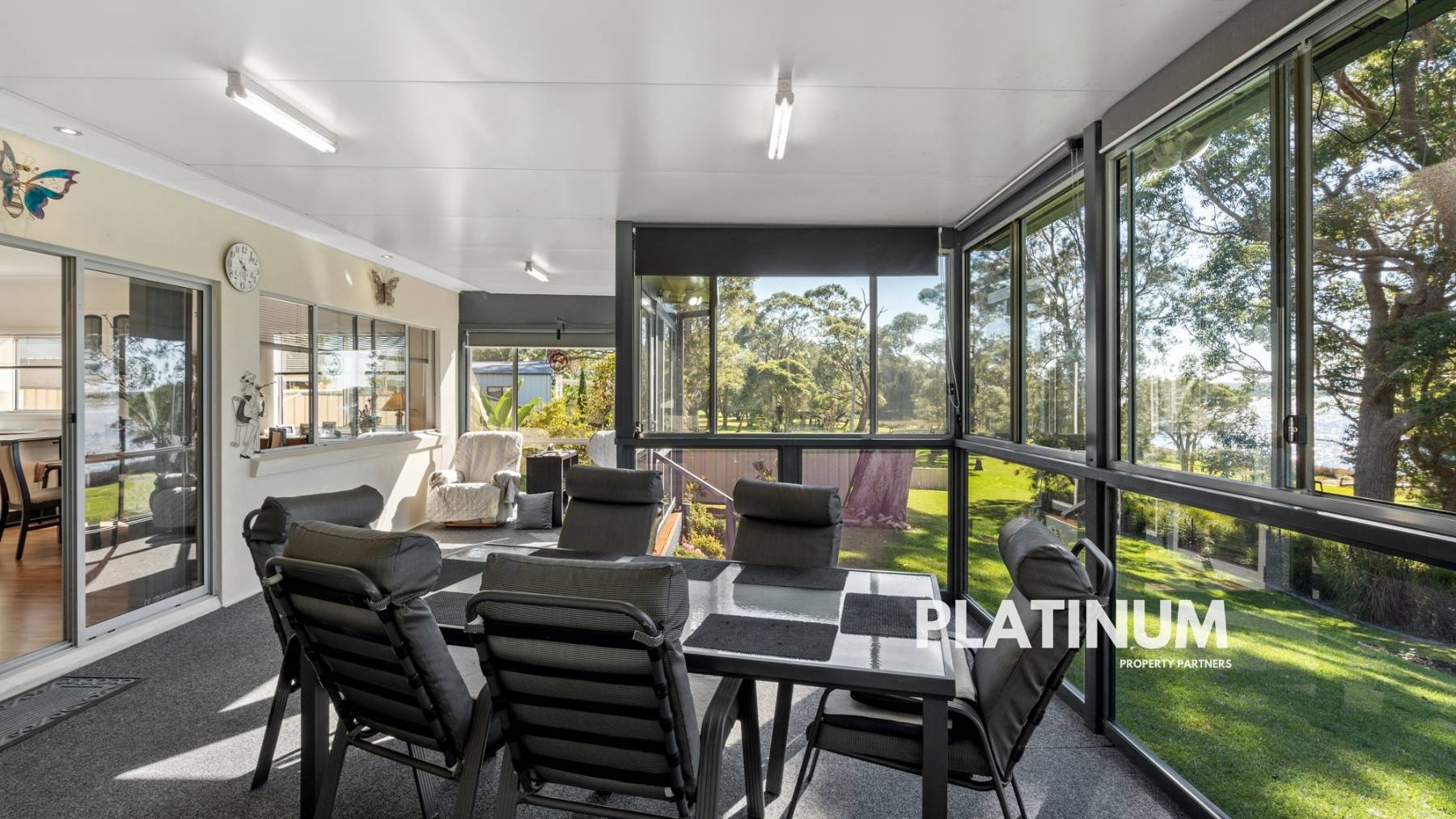 Step outside to discover your outdoor/indoor entertainment area, encased in windows to capture the astonishing vista and allow the summer breeze to waft through. This could easily act as a second living area. The gentle gradient of the soft grass leads down to the water's edge, ideal for an array of aquatic pursuits.