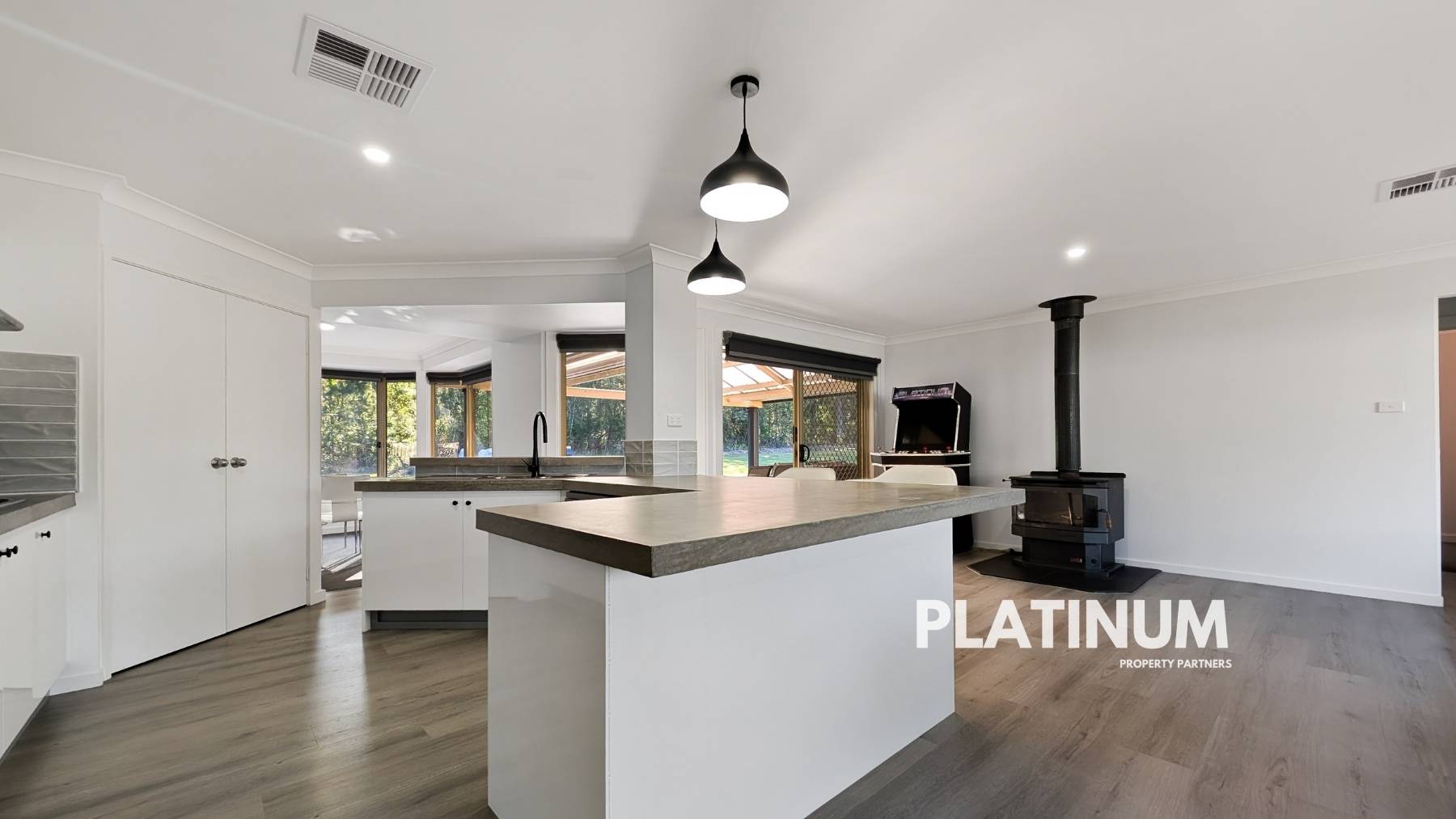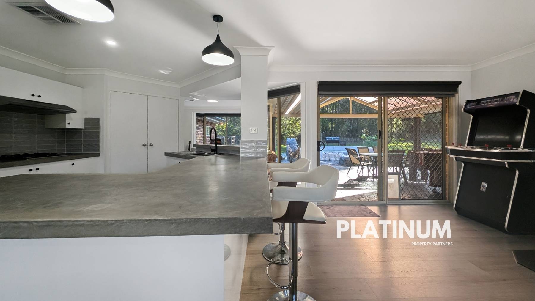 The expansive residence is an epitome of comfort and style, featuring five generously sized bedrooms, all with built-in robes for optimal organisation. The master suite is a sanctuary of luxury, with a walk-in robe, ensuite, and large bay windows framing idyllic views of the surrounding estate. The way the layout is designed caters for a large family but still provides privacy or retreat for parents. Modern living is embodied within the open plan kitchen and dining space, where culinary enthusiasts will revel in the concrete benchtops, premium gas cooking, dishwasher, and sociable breakfast bar.