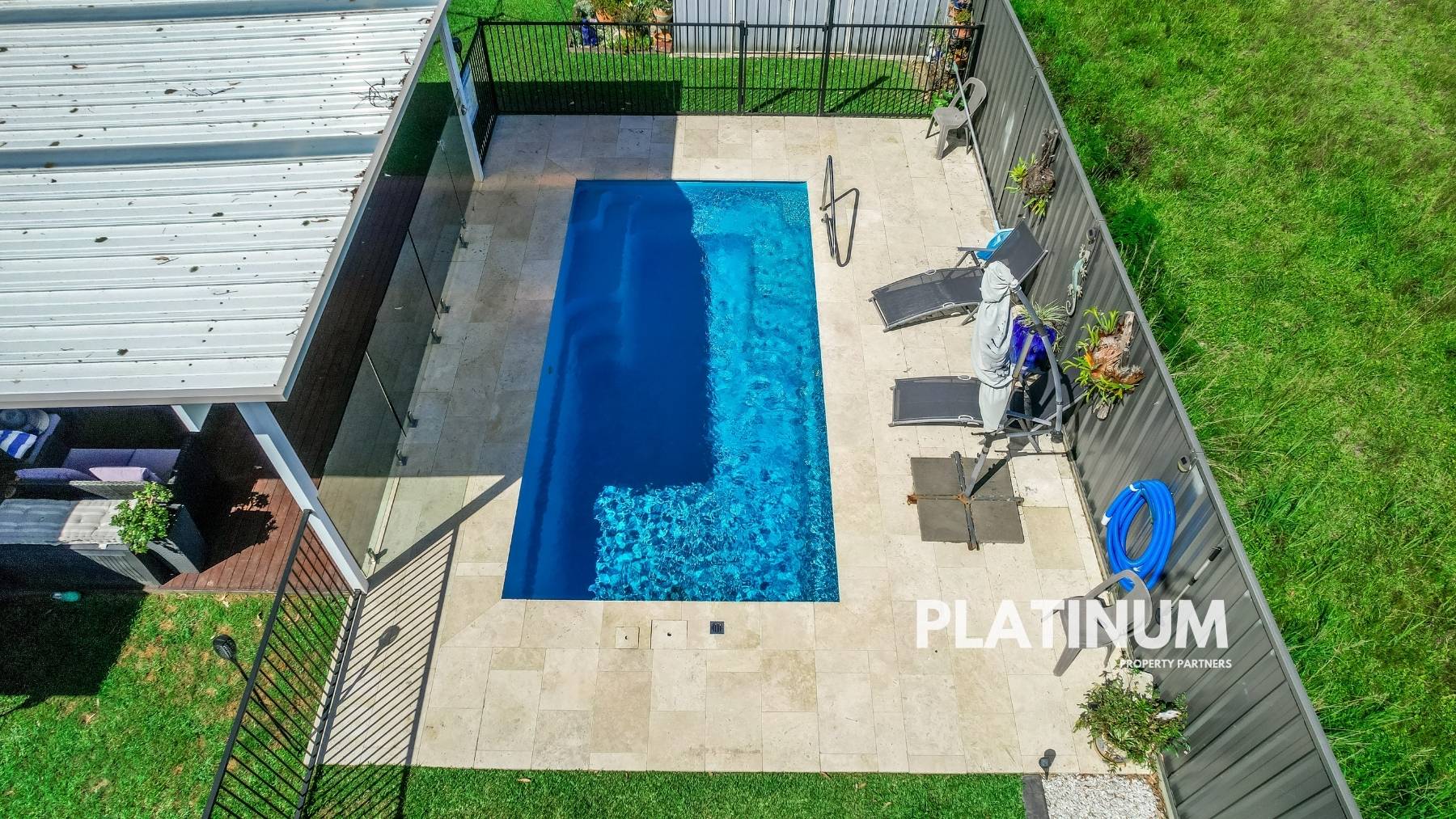 Outdoor living is elevated to new heights with a stunning in-ground pool, complete with lighting, and an undercover alfresco area, perfect for entertaining or tranquil evenings at home. The outdoor area features a huge electric blind to cool you from the warm afternoon sun. Making the outdoor area usable all year round. The additional features such as solar panels, electric garage doors, alarm system and a concrete driveway with extra gravel pad, plus side access cater to both convenience and sustainability.