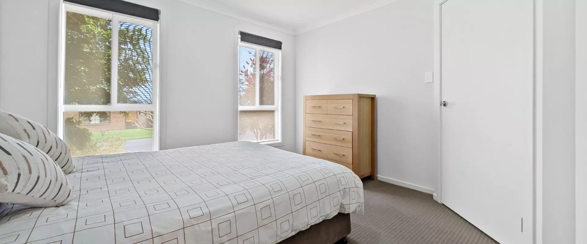 In total, there are four well-appointed bedrooms, all with built-in wardrobes with ceiling fans. One bedroom also features a walk-in robe, providing extra storage and convenience. Three sleek bathrooms service the home, including a powder room-style setup and combined laundry in the first unit, plus a large central bathroom with shower, bath and toilet in the second.