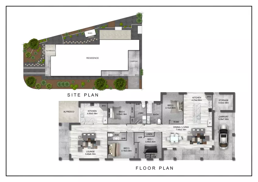 Both residences feature spacious, light-filled open-plan living, dining and kitchen areas that flow seamlessly together. Each kitchen is fitted with stone benchtops, electric cooking, dishwashers, built-in microwaves, and ample cupboard and bench space. The larger kitchen also includes an island bench that doubles perfectly as a breakfast bar.