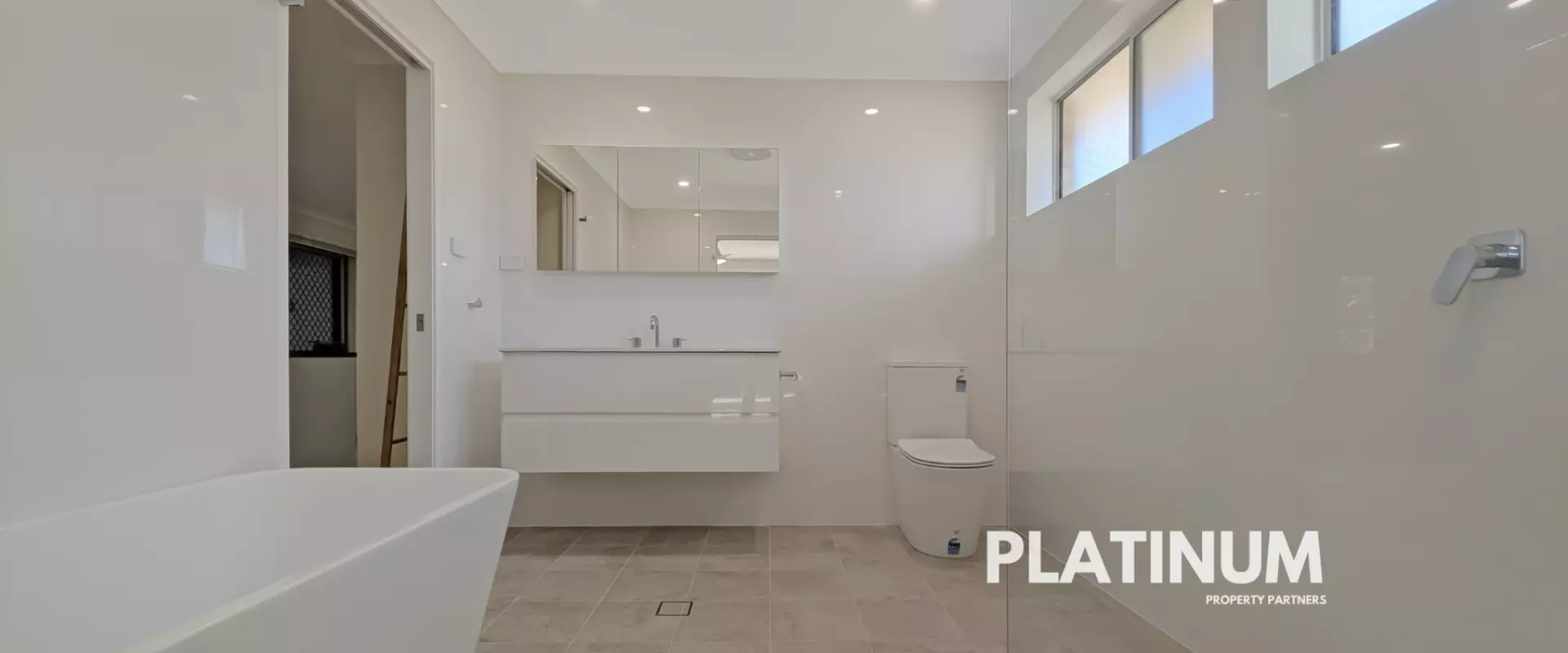 At the heart of this home is a stunning, fully renovated bathroom featuring a sleek shower, freestanding bath, and floating vanity, creating a serene retreat from the hustle and bustle of daily life. This doubles as an ensuite to the main bedroom. The large living room basks in abundant natural light, while the in-built bar nook provides a delightful space for entertaining guests or enjoying quiet moments.