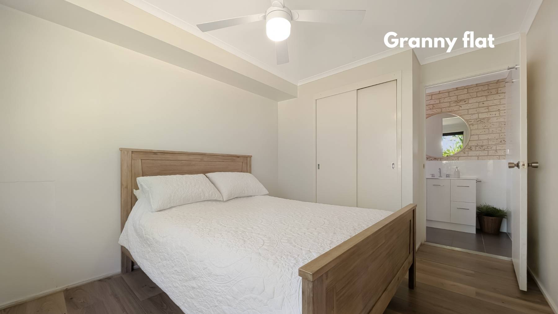 Additional features include a renovated laundry with a third toilet and this separates the Granny flat from the rest of the residence. The granny flat comes with its own kitchen with electric cooking, living room, and bedroom with an ensuite, perfect for accommodating an elder relative or generating a rental income.
