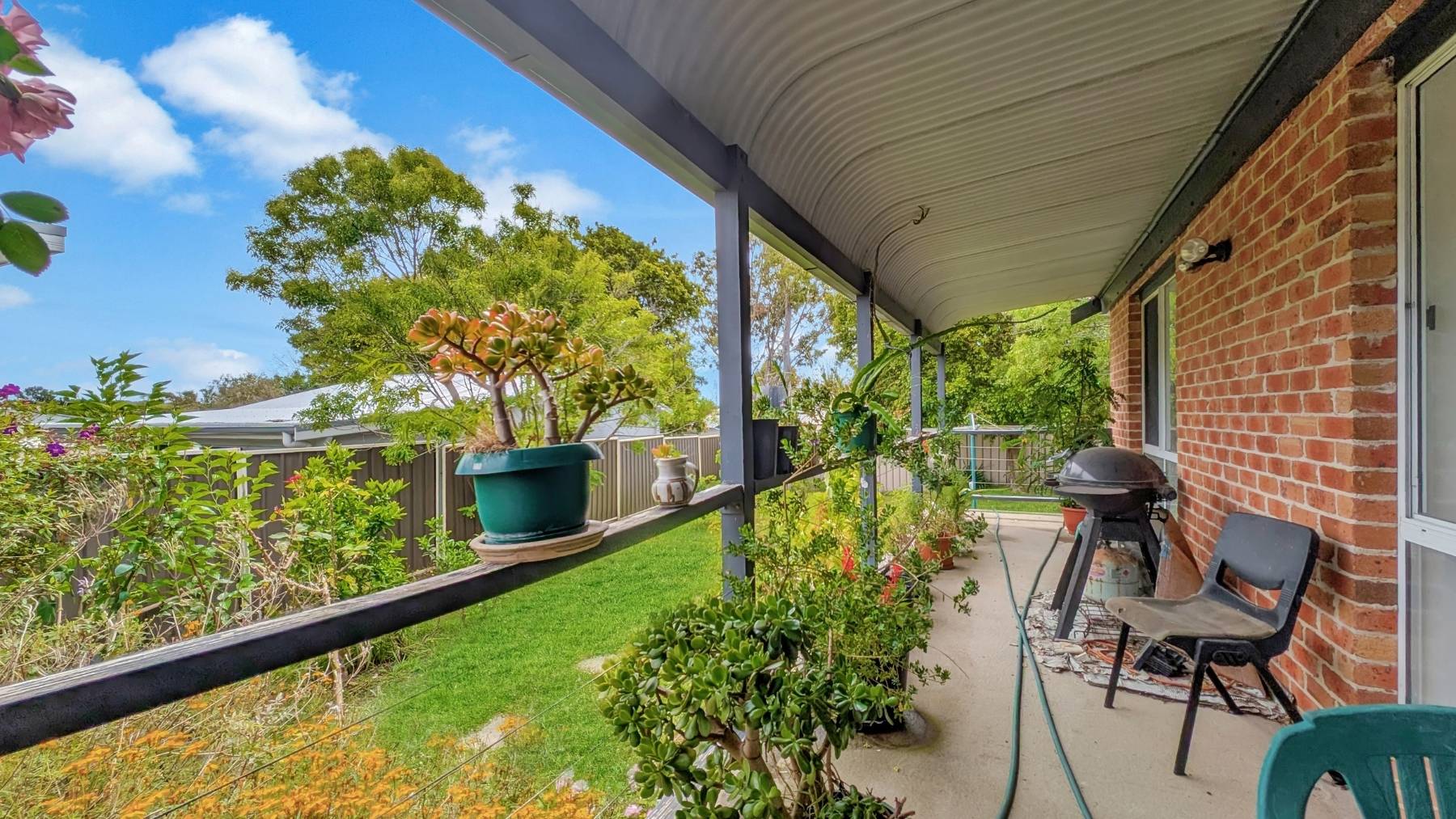 The property's exterior is just as inviting, showcasing a lengthy front verandah that overlooks the beautiful gardens, providing an idyllic spot for morning teas or evening relaxation. A fully fenced backyard guarantees privacy and security, complemented by a single garage at the front with easy access and a durable concrete driveway.
