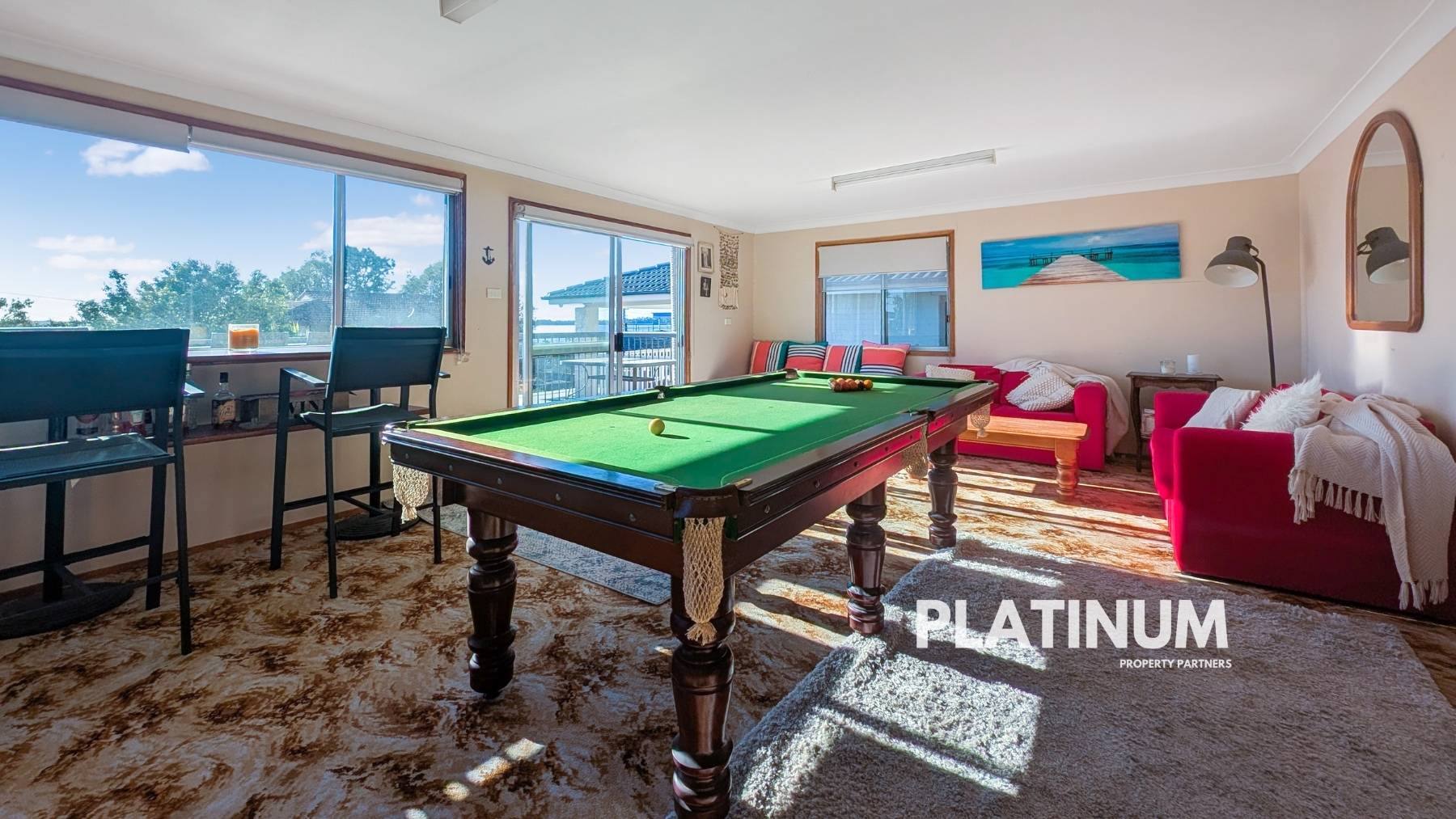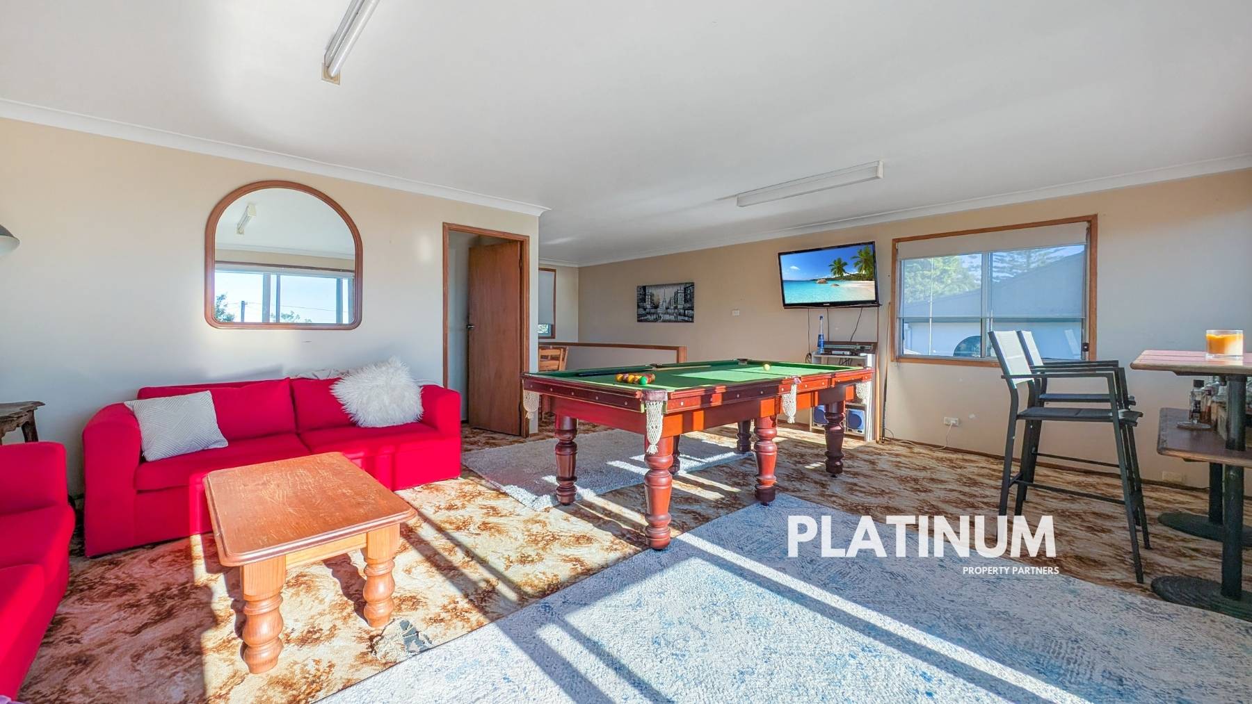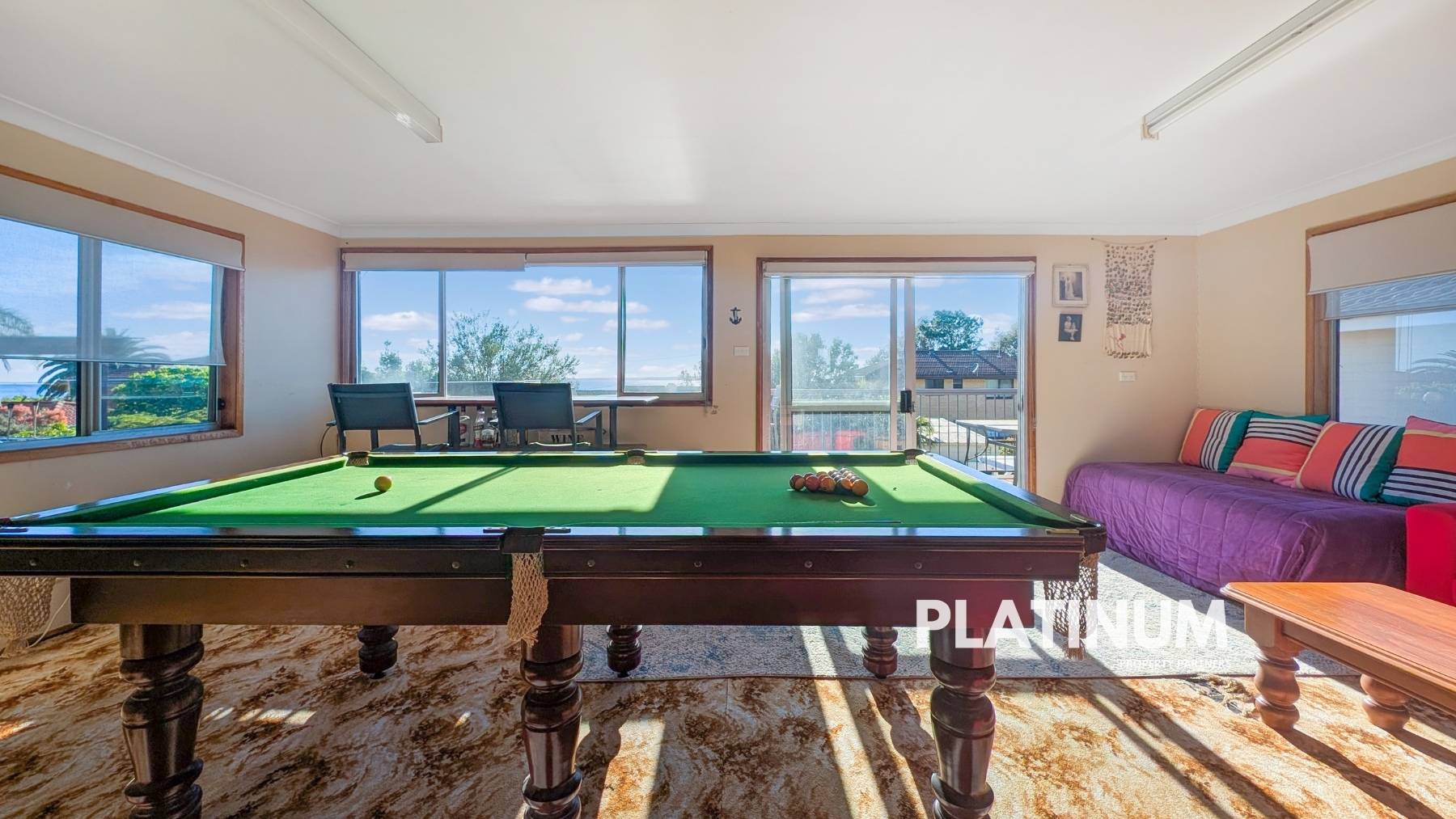 A centrally located bathroom caters to the home with a relaxing bath, a shower, and separate toilet. There is also a second toilet in the outside laundry. Upstairs, an expansive living room, affectionately known as the rumpus room, invites awe-inspiring panoramic views of the bay, while the secluded main bedroom offers a quiet retreat to listen to waves crash at night.