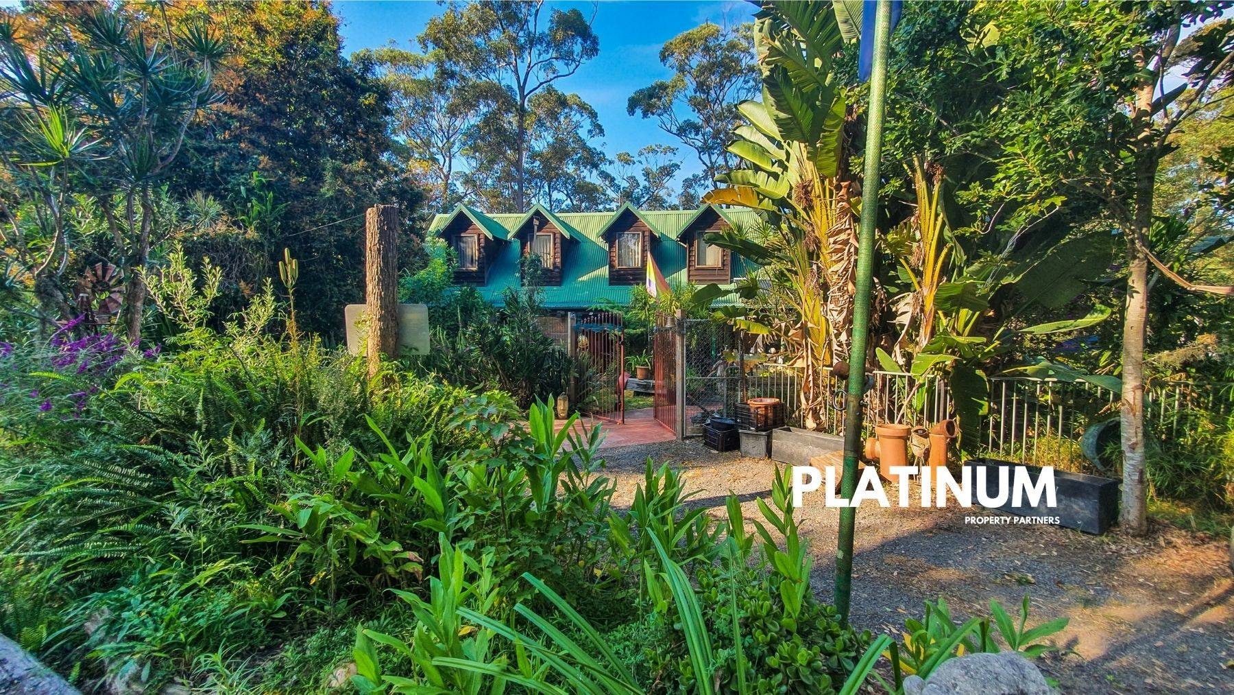 Moving right we have Cabin 2 or the main house: Again we have gated entry and perfectly manicured gardens for privacy. Entering the house you are once again greeted with exposed wood, plenty of natural light and room to move. The open plan living area has a fireplace and a split system aircon. The kitchen here has arguably the best view on the property with clear unobstructed elevated views of not only your land but also straight down to the jetty and water. Also capitalising on the view is a full bathroom and bedroom. Now upstairs is interesting with a full bathroom 2 further bedrooms and another living area. This is the largest of the dwellings. If you are feeling at one with nature there is also an outdoor shower with a view as well. To the side of the main house we have a carport (which could also be a entertaining area and a double garage with a storage loft up the top as well.